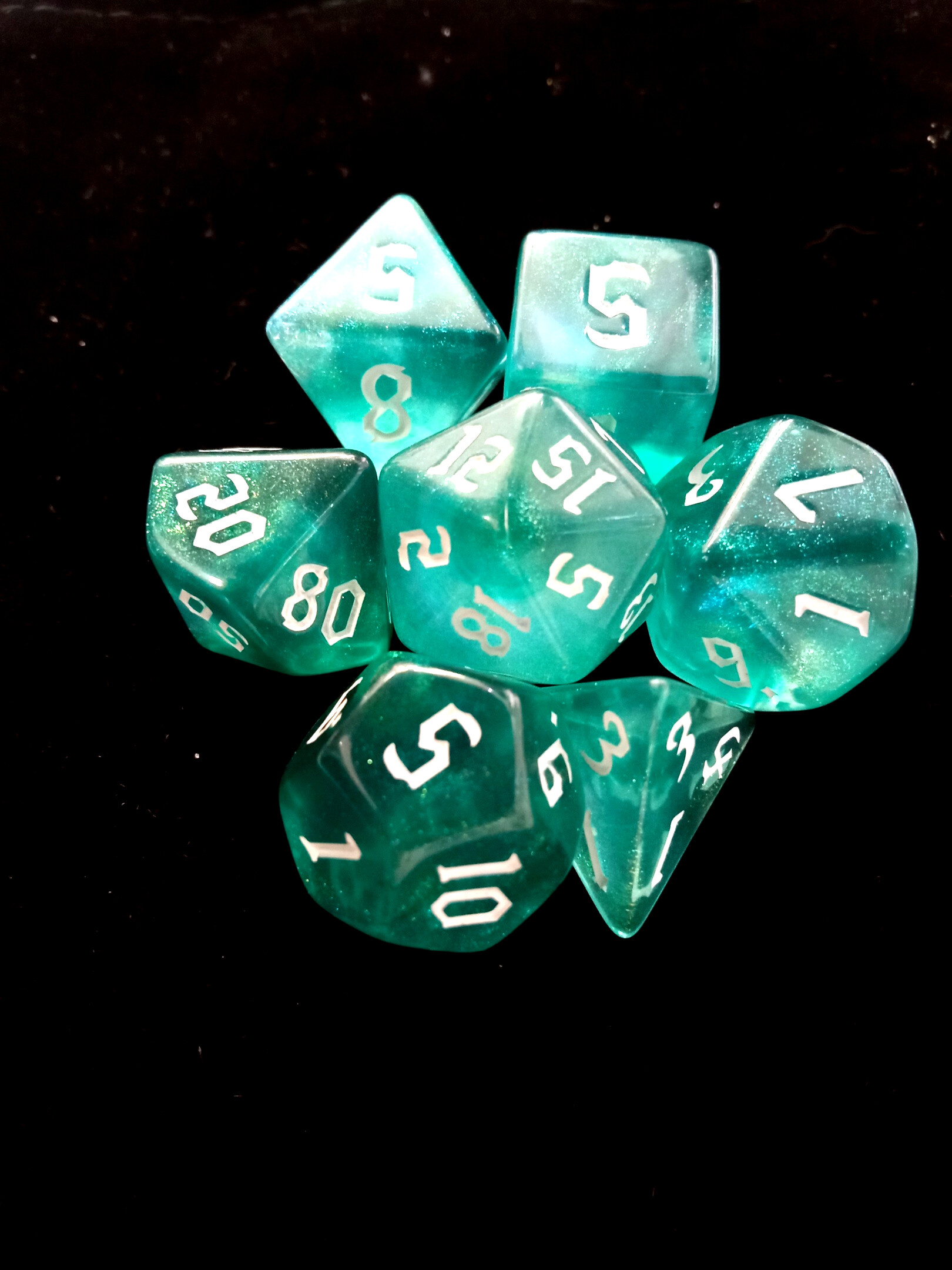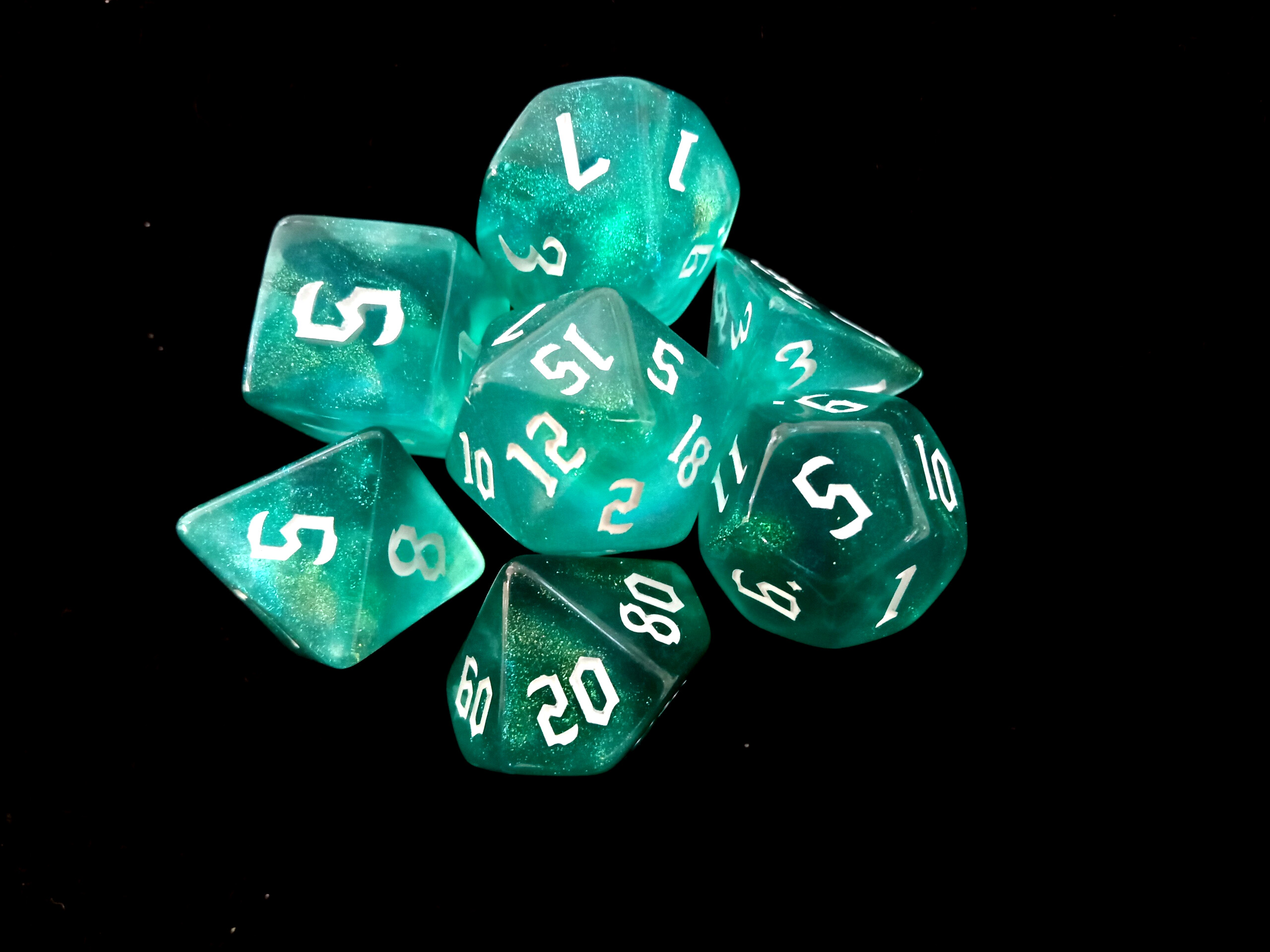 Набор кубиков для RPG 7 шт. блестящие зелено-голубые