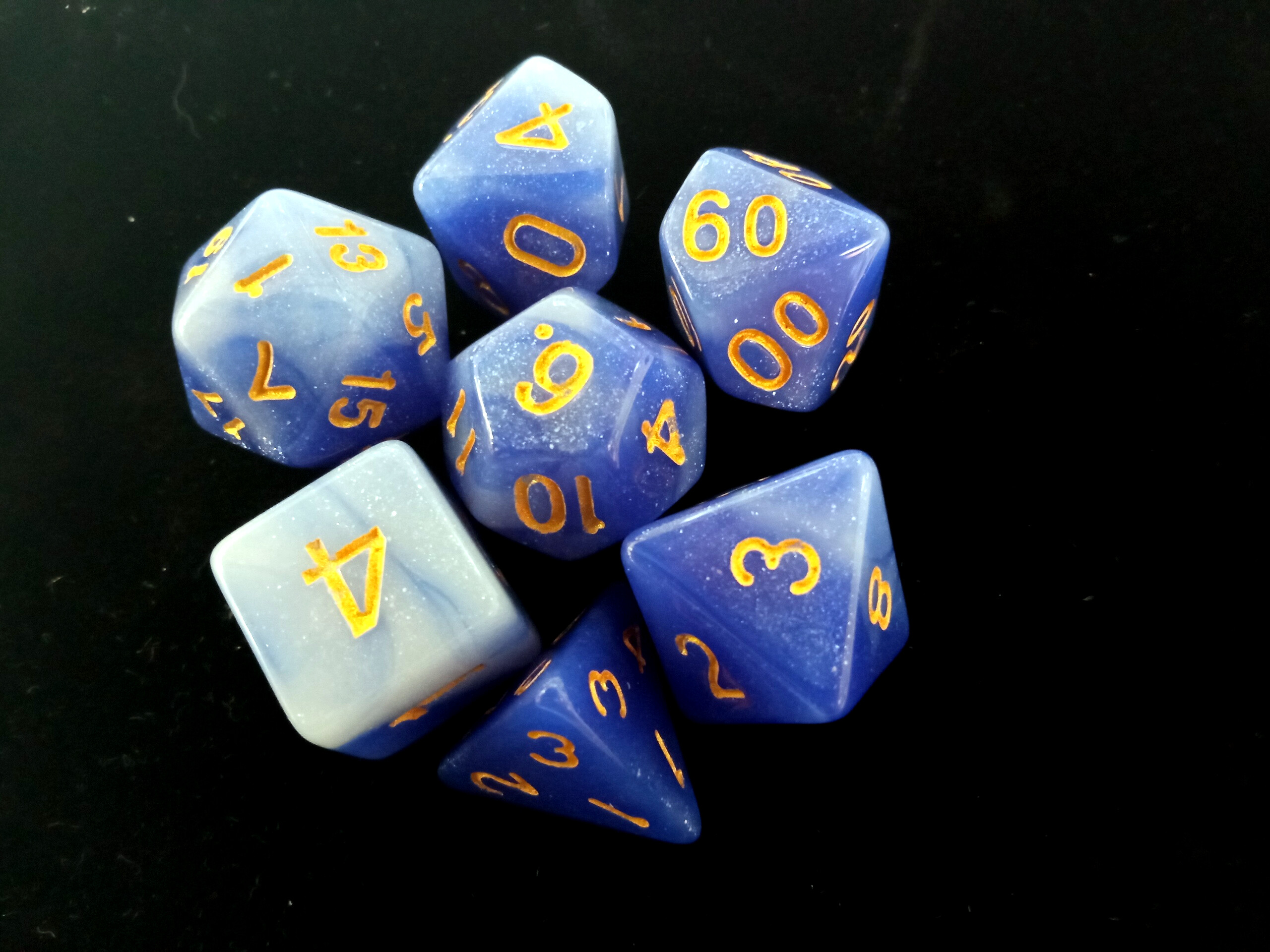 Набор кубиков для RPG 7 шт. матовые с блестками сине-белые