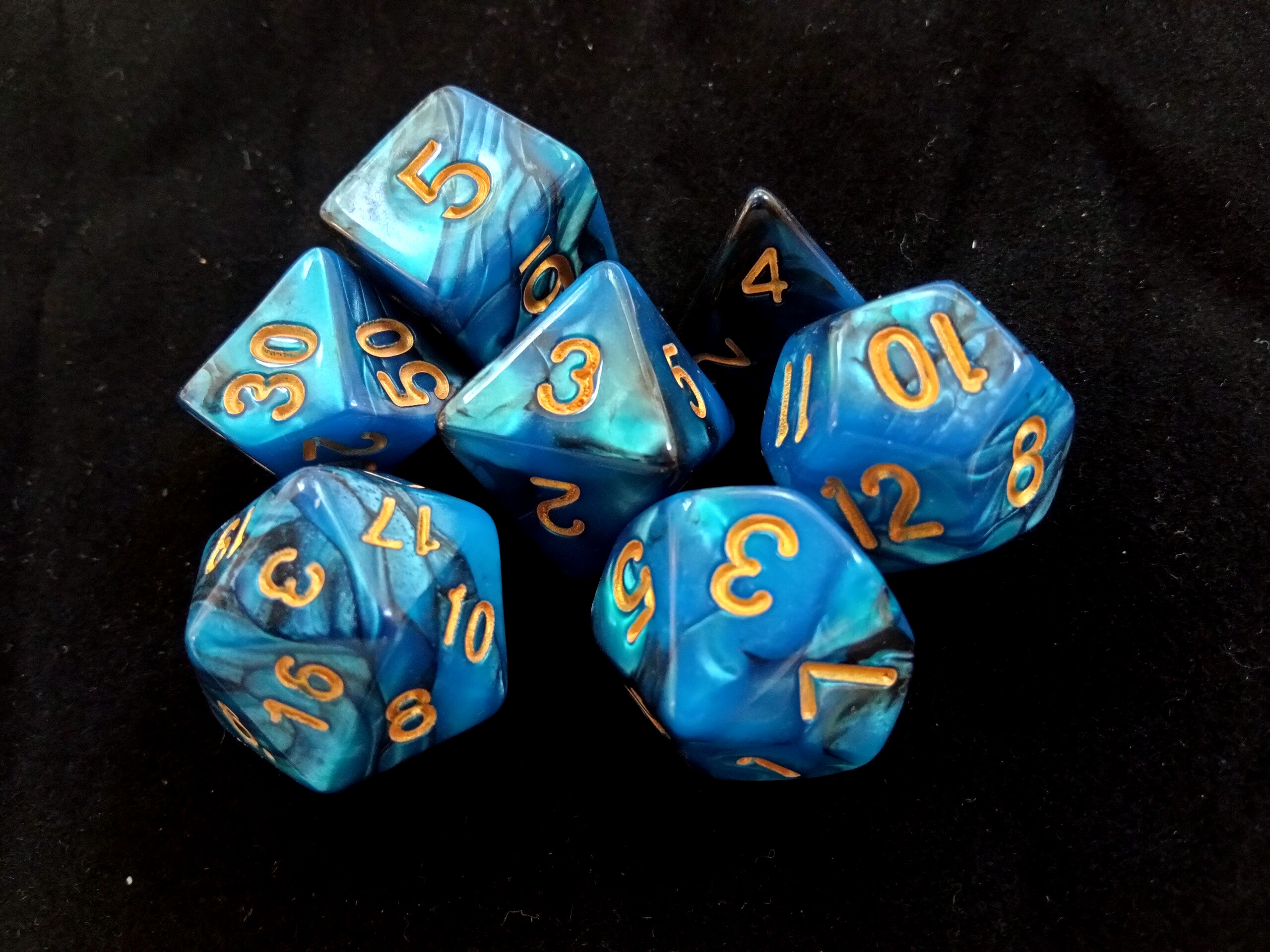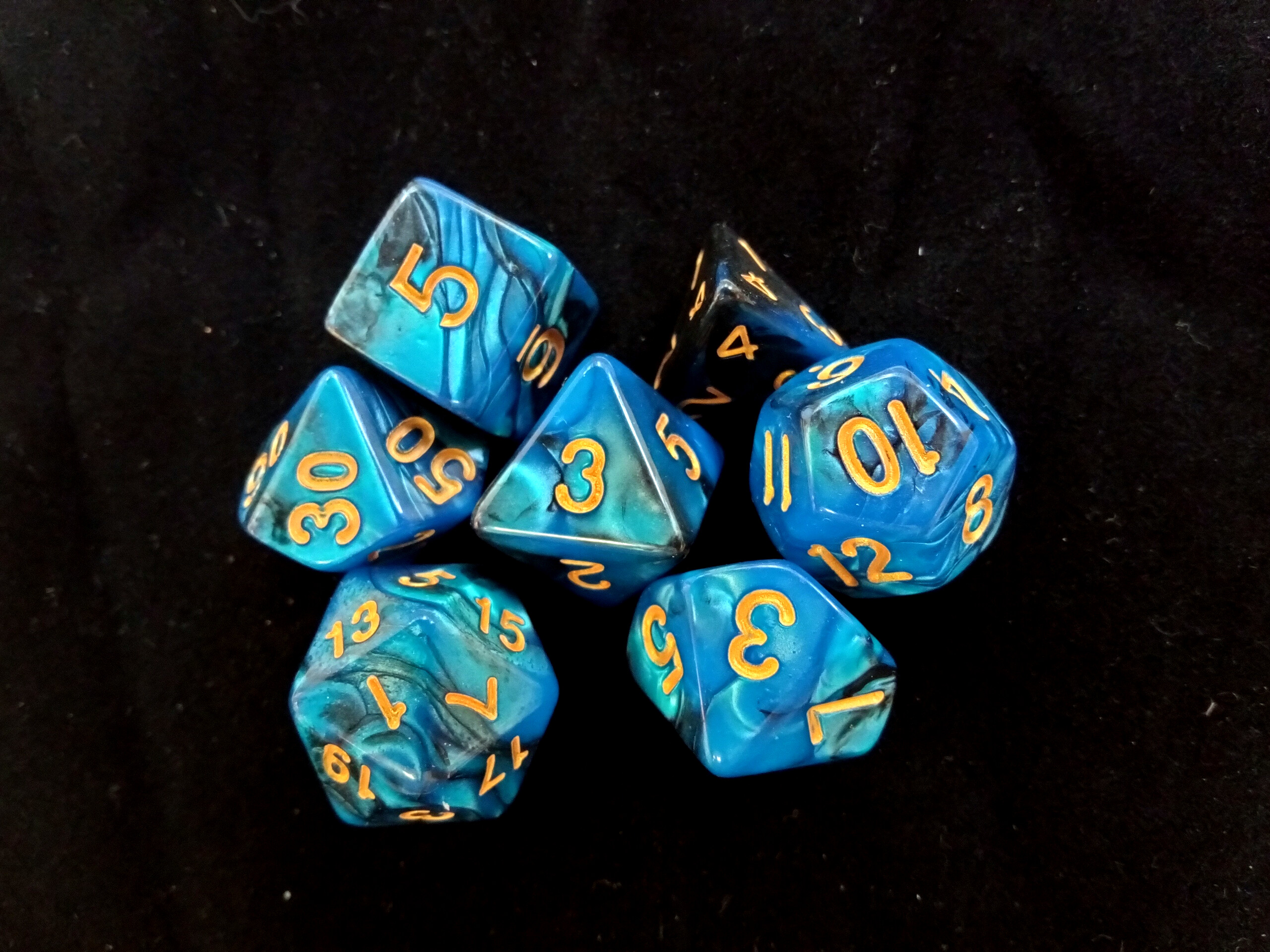Набор кубиков для RPG 7 шт. перламутровые сине-черные