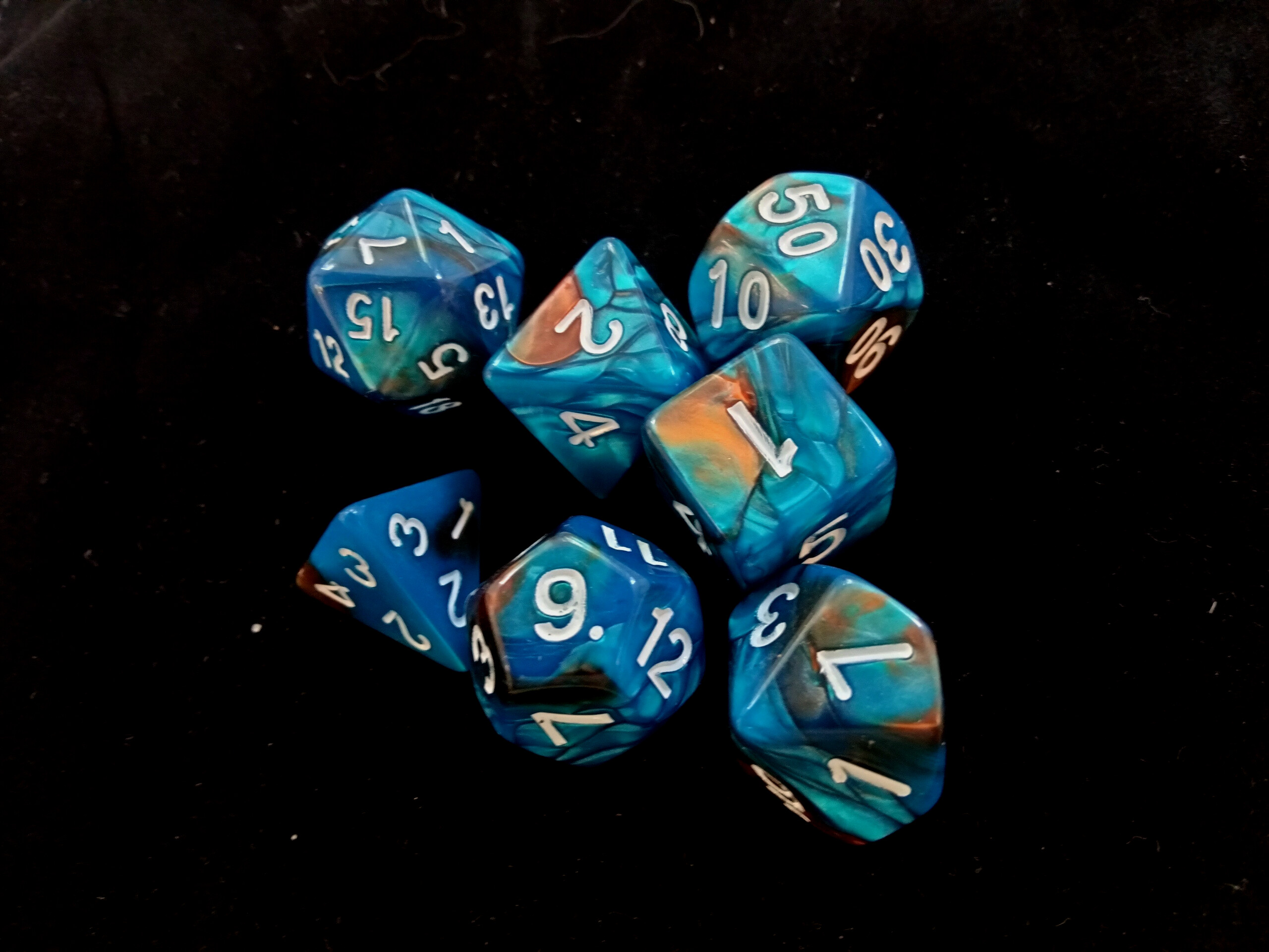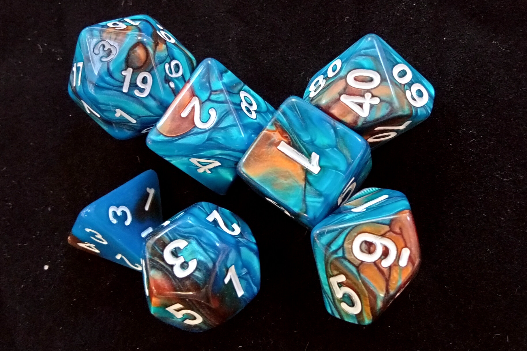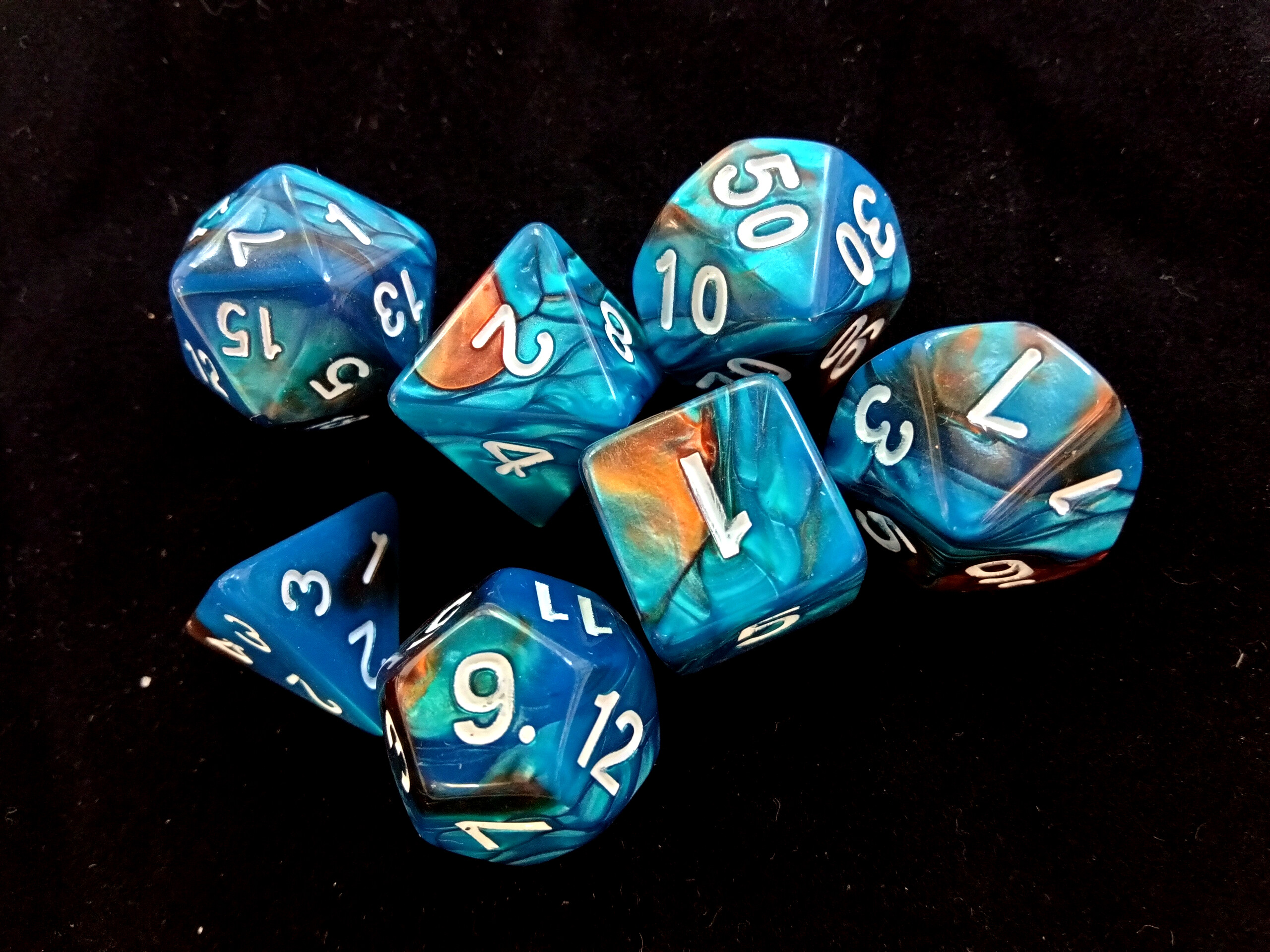 Набор кубиков для RPG 7 шт. перламутровые сине-оранжевые