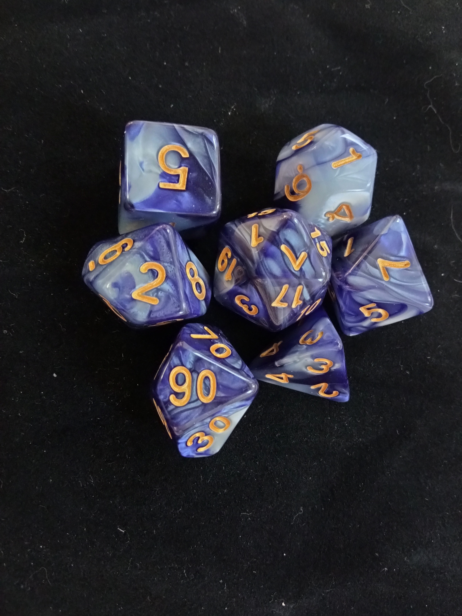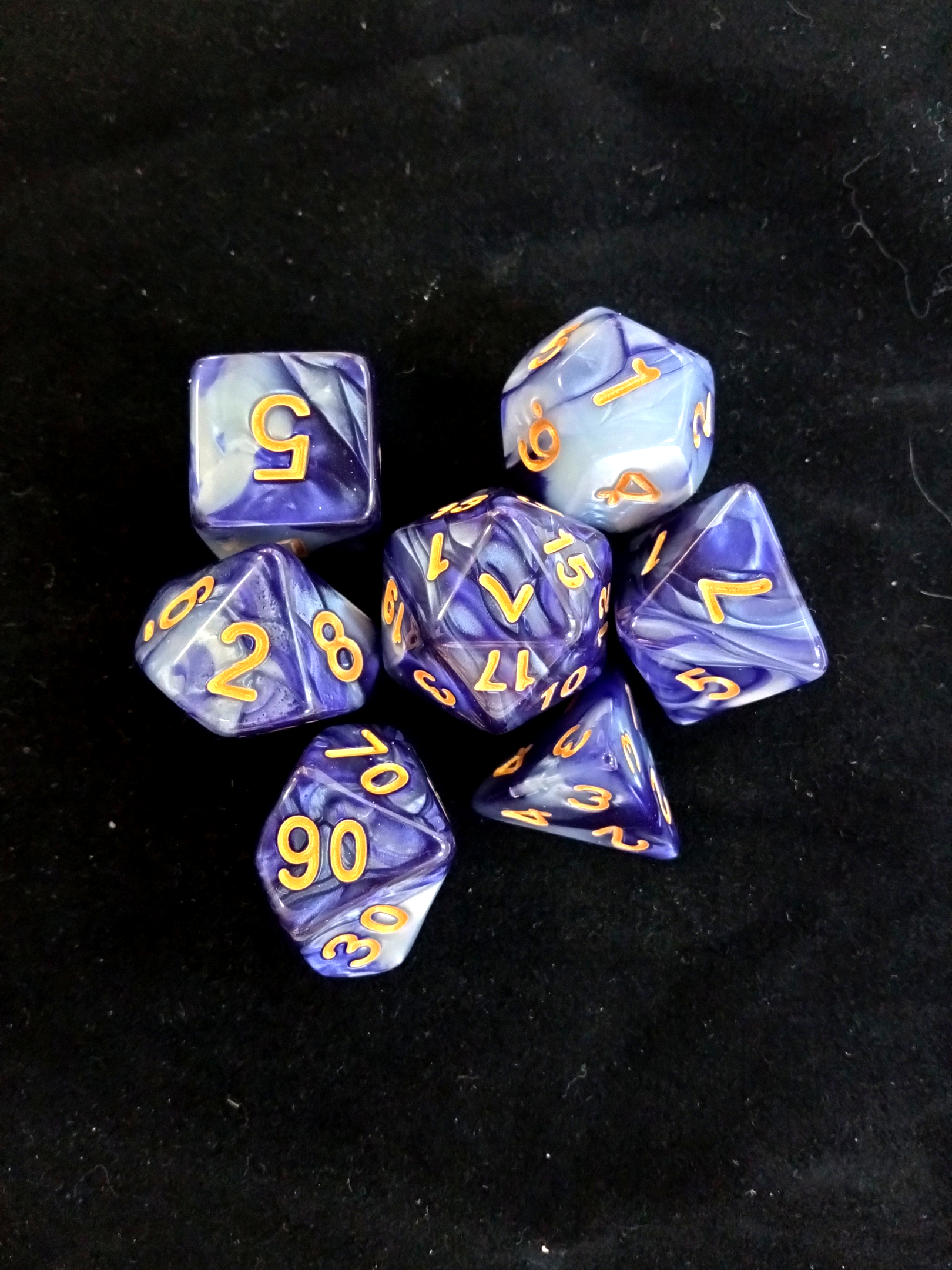 Кубики с разными гранями предназначены для словесных ролевых приключений. С помощью семи кубиков вы сможете решить исход битвы, или возникший спор. Данный вариант выполнен из прочного пластика с перламутровой структурой.