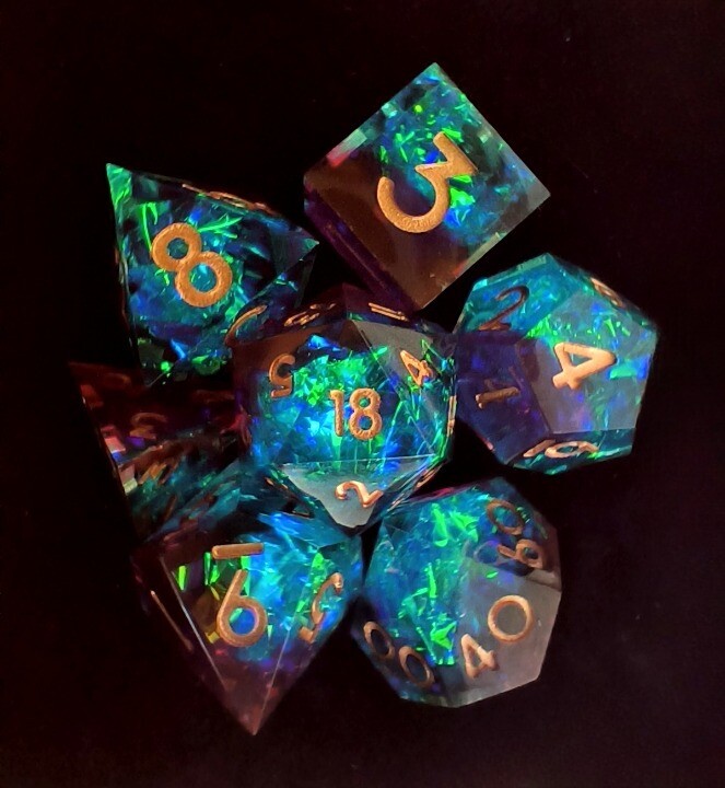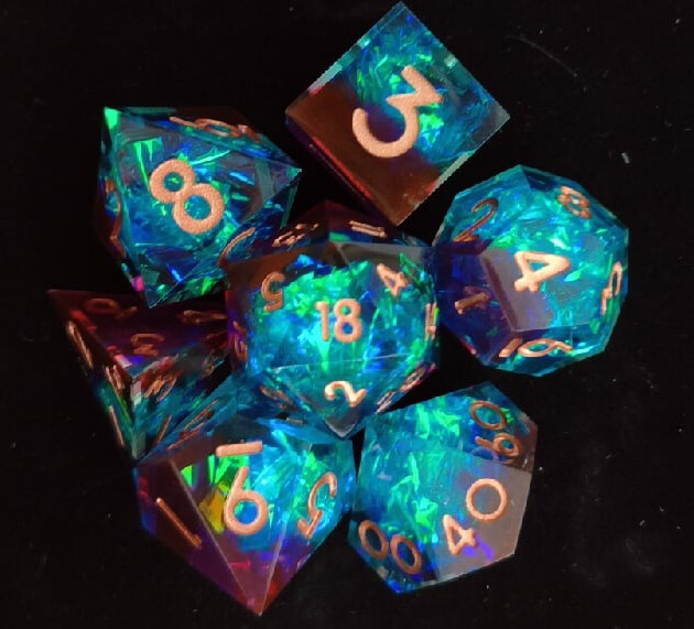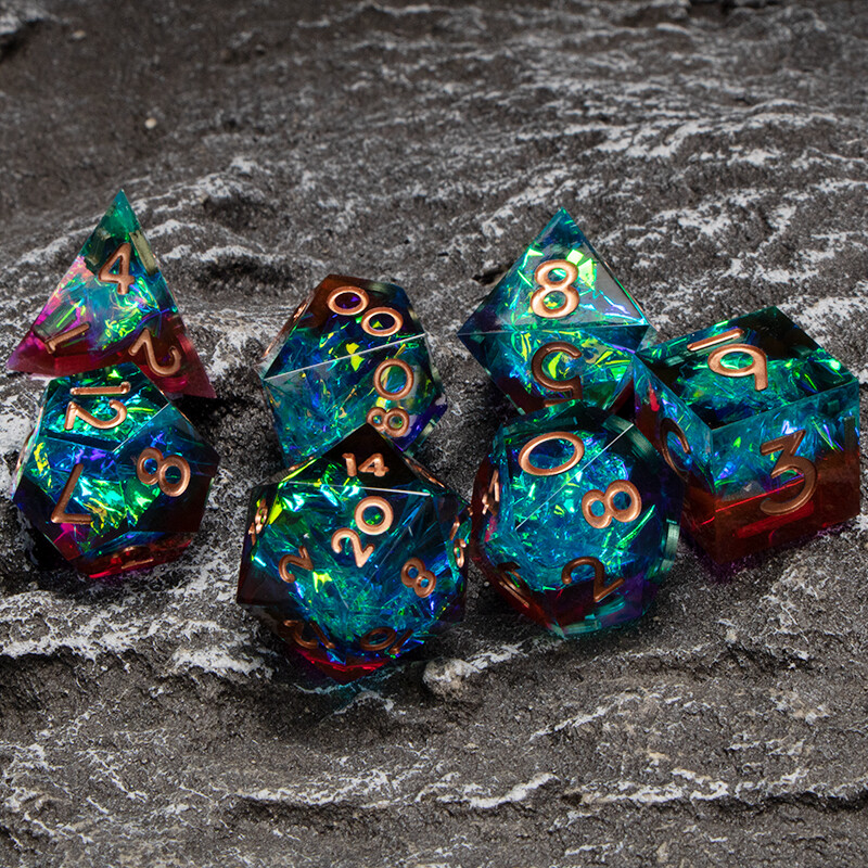 Невероятно красивый набор кубиков предназначен для настольных ролевых приключений. Семь кубиков, изготовленных из прочного пластика, имеют разное количество граней и помогут игрокам решить любой вопрос, возникший за игровым столом.