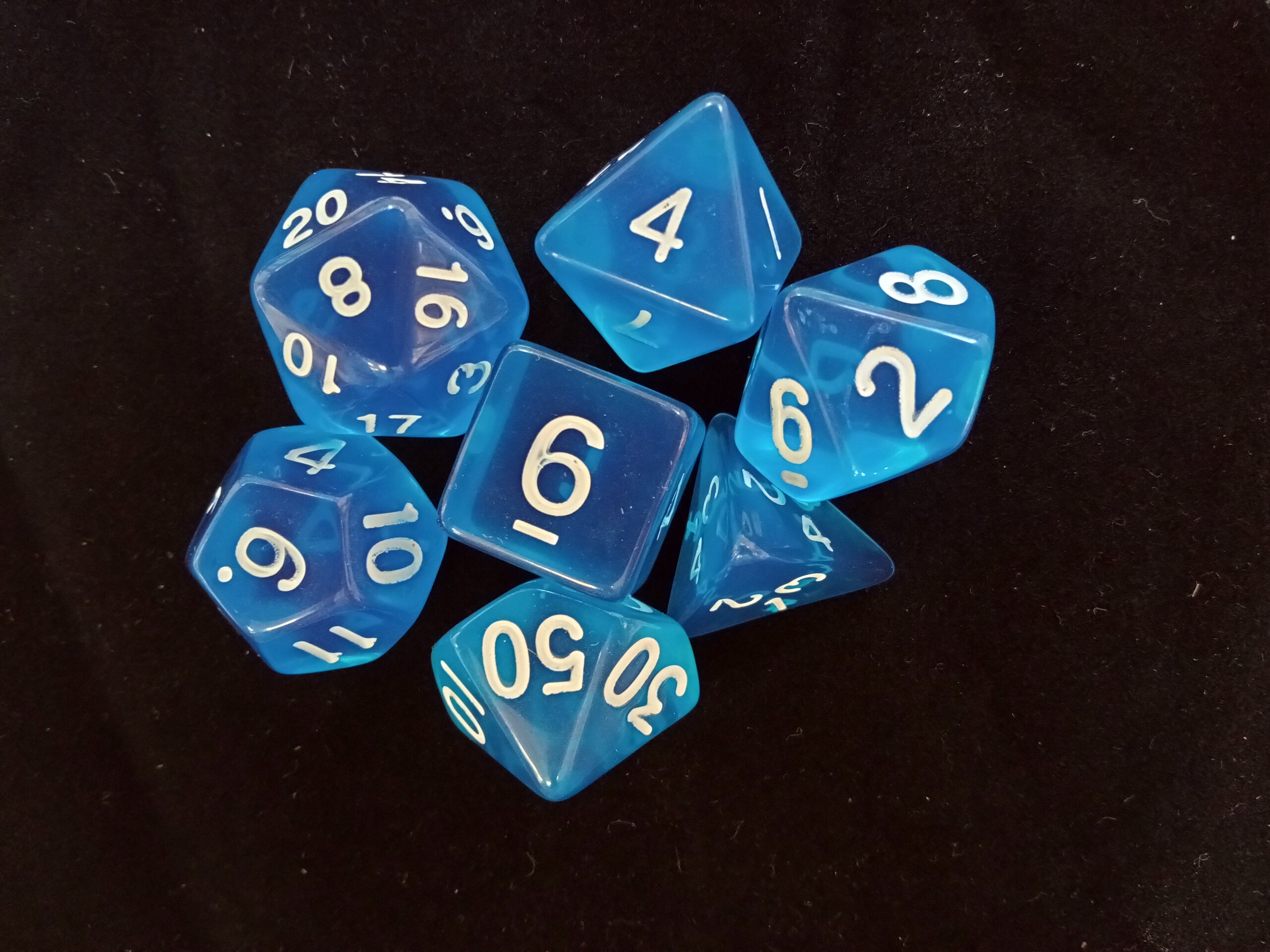 Набор кубиков для RPG 7 шт. прозрачный голубой