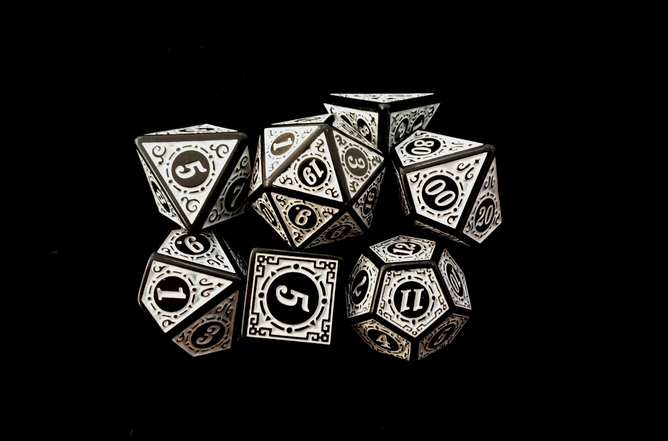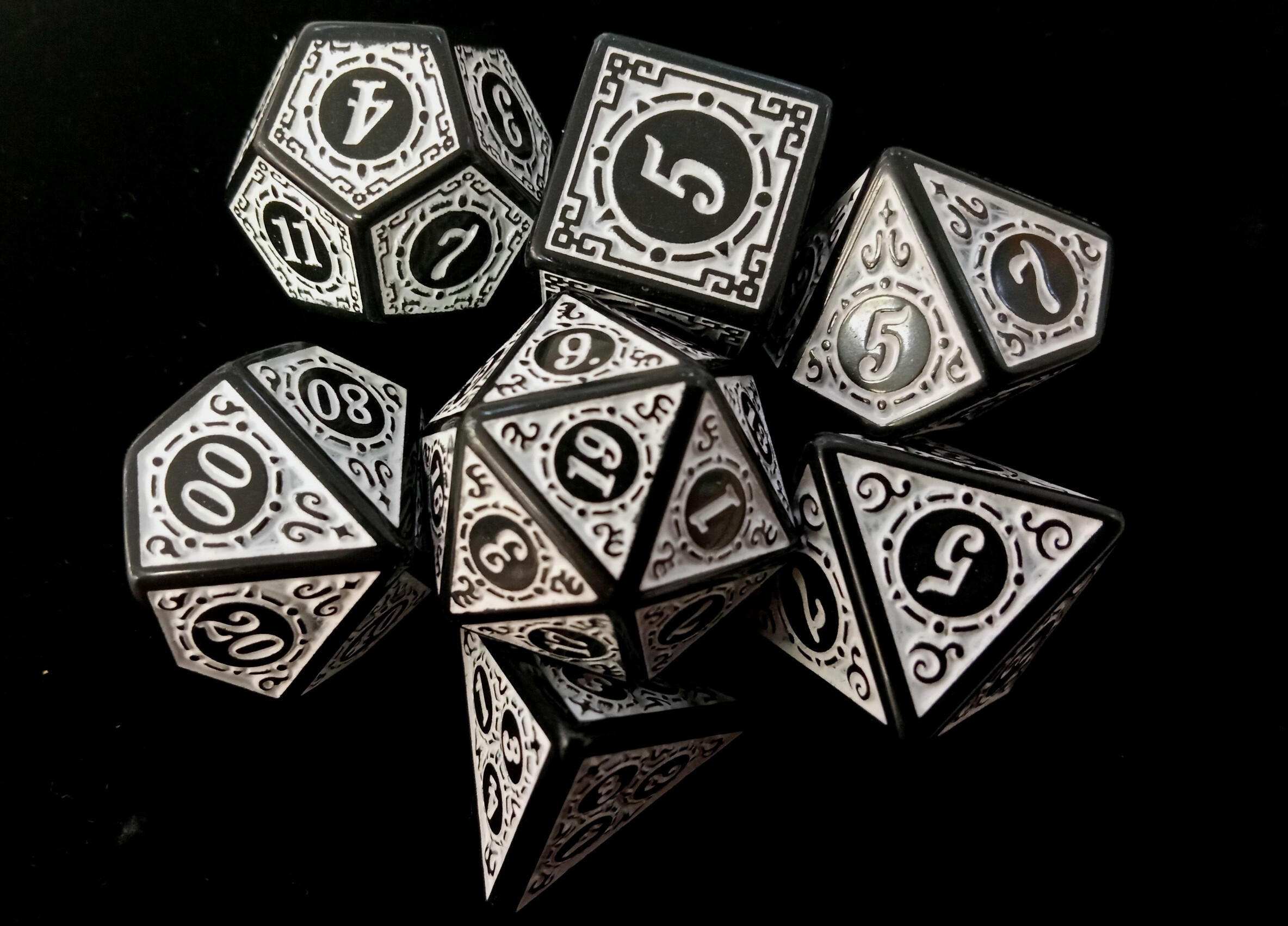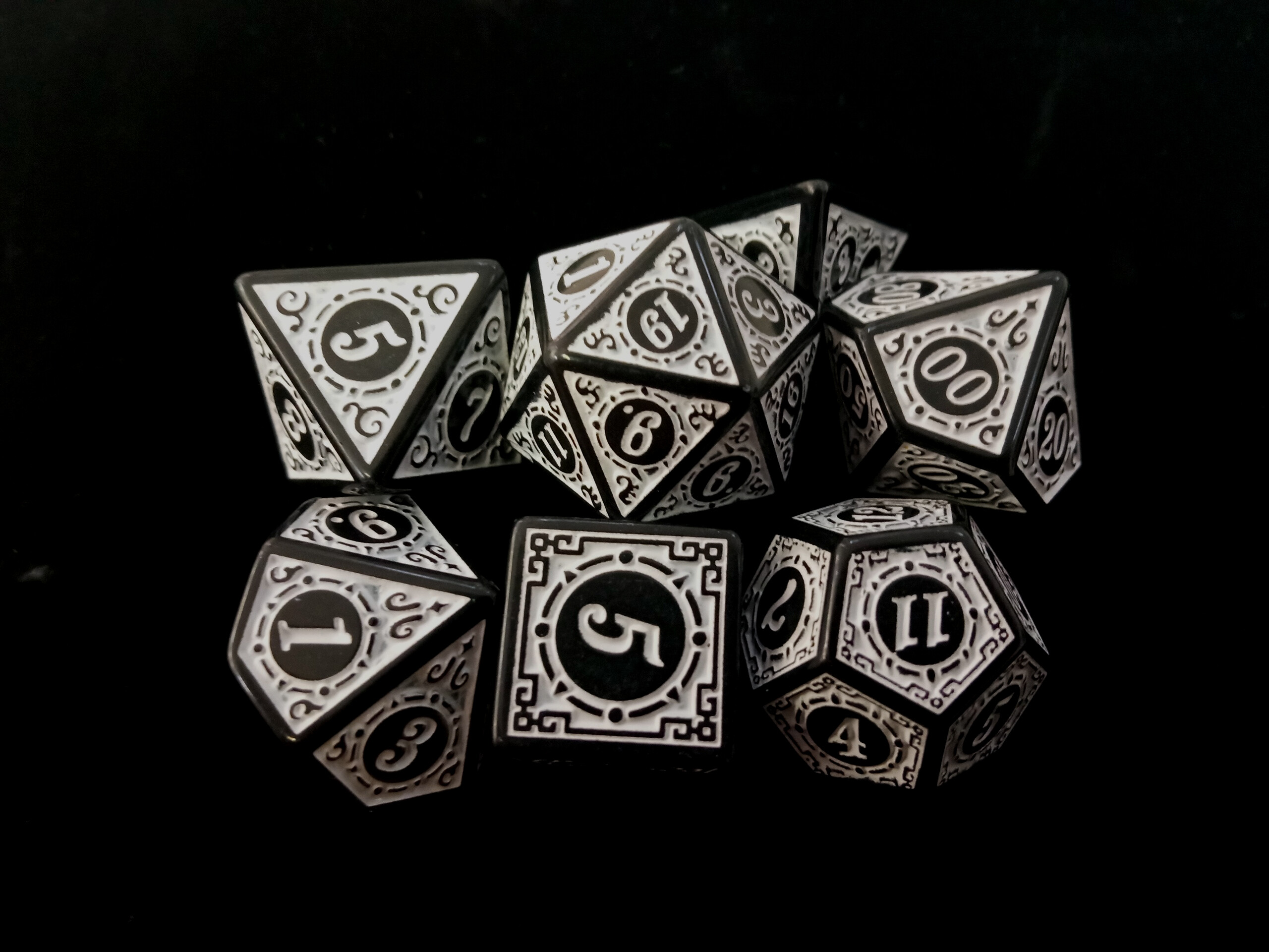Набор кубиков для RPG 7 шт. с объемным рисунком Черные с белым