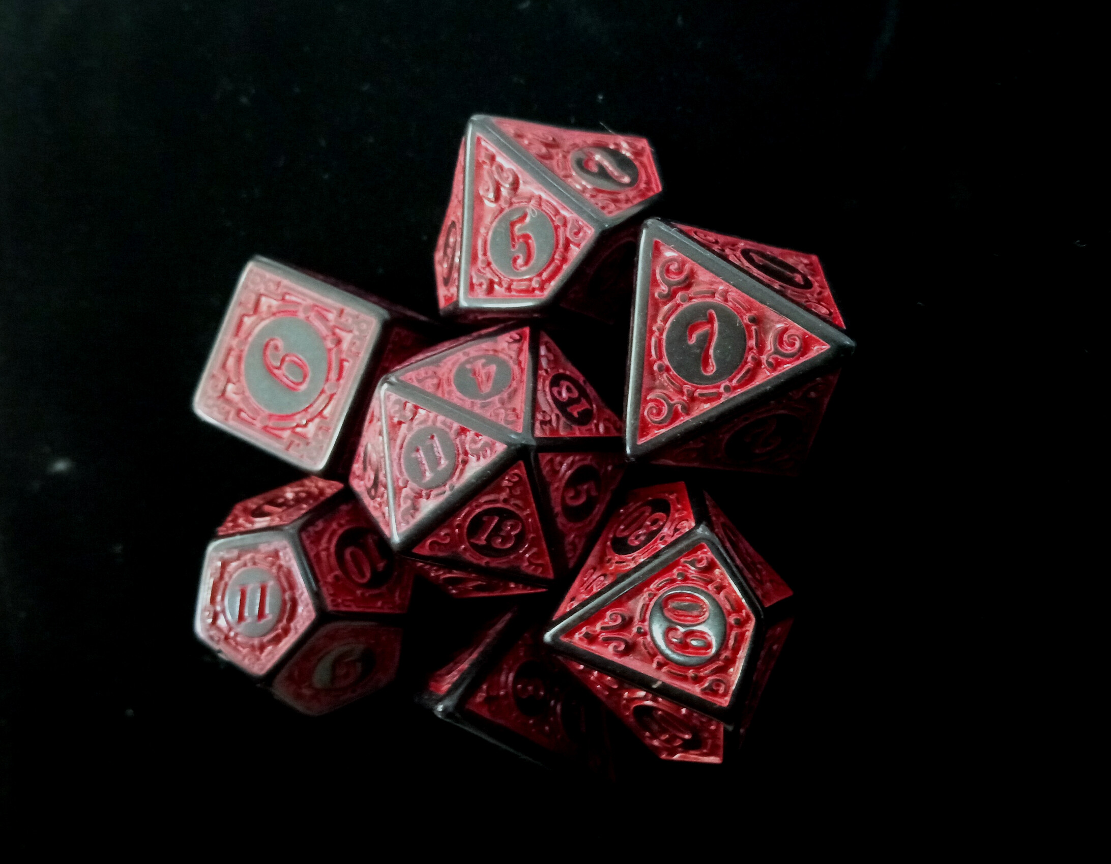 Набор кубиков для RPG 7 шт. с объемным рисунком Черные с красным