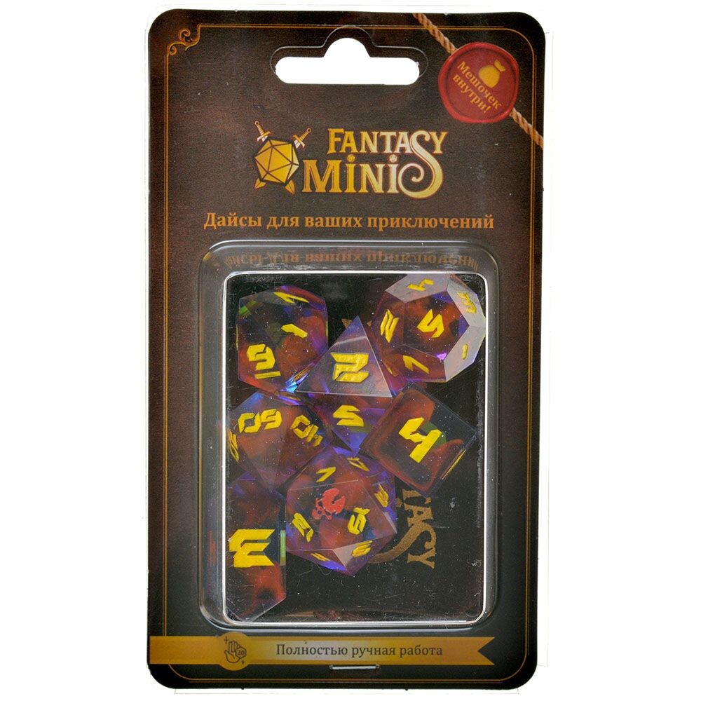 Красочные игральные кубики подойдут для множества настольных ролевых игр. Изготовленные из прочного пластика, игральные кости отличаются друг от друга по числу граней и представлены в количестве семи штук.