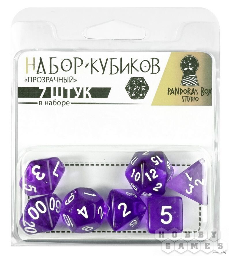 Набор кубиков "Прозрачный", для RPG, 7 шт, фиолетово-белый