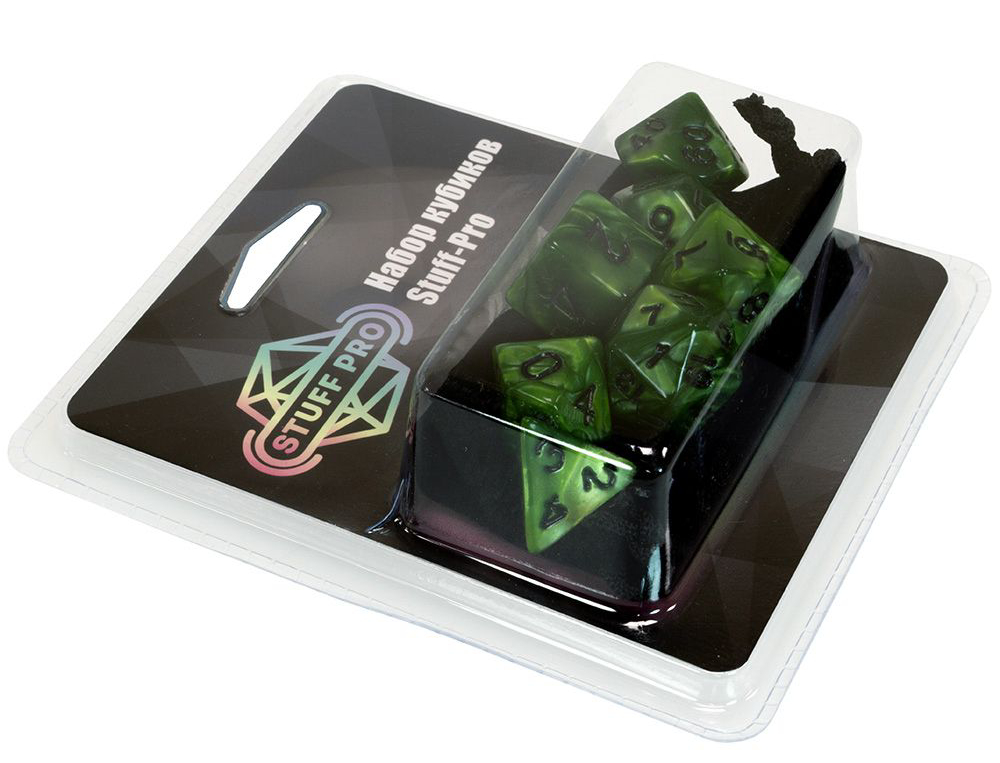 Данный набор кубиков весьма необычен. Дело в том, что каждая игральная кость имеет разное количество граней, а сам набор предназначен для различных словесных ролевых настольных игр. В небольшой коробке вы найдете семь кубиков и удобный мешочек для их хранения.