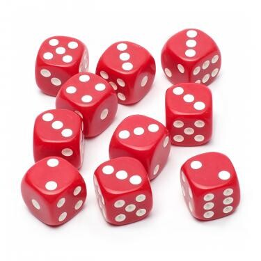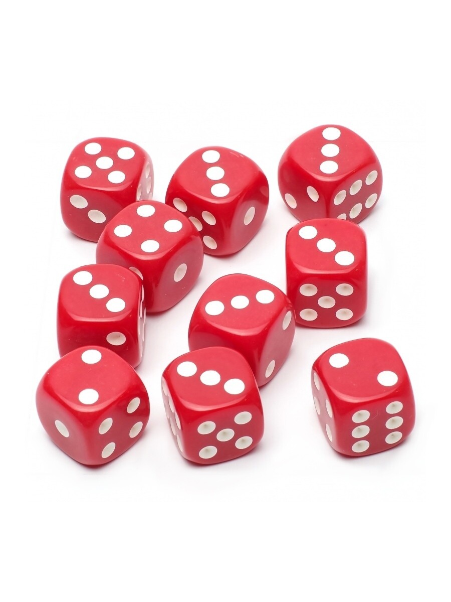 Набор из десяти игральных кубиков с одинаковым количеством граней абсолютно универсален и подойдет для множества настольных игр и развлечений. В данном наборе шестигранные кубики представлены в красном цвете.