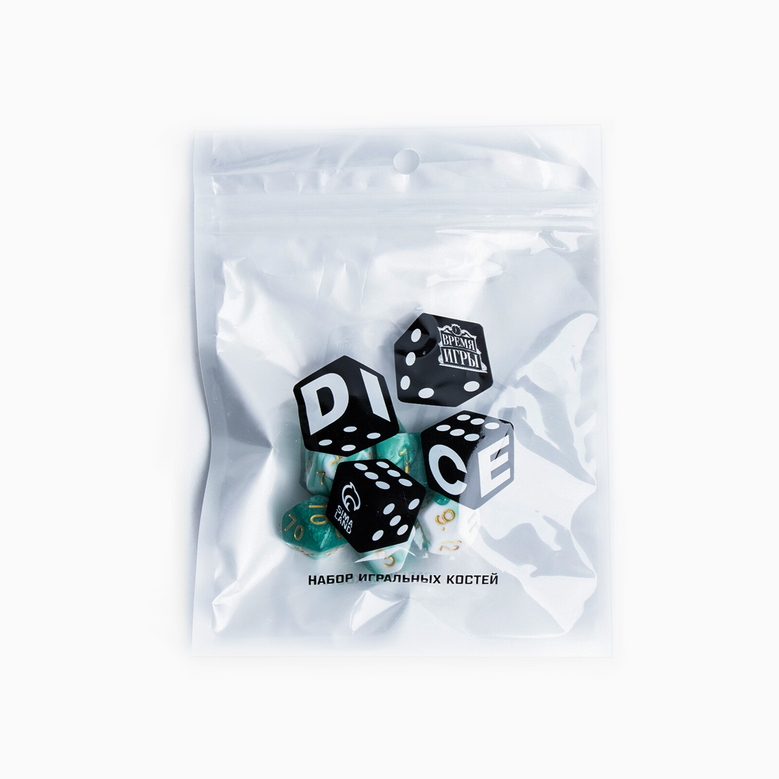 Данный набор кубиков универсален и подойдет для настольных ролевых игр. Семь игральных костей в упаковке обладают разным количеством граней и числовых значений. Кубики изготовлены из прочного пластика, имеющего мраморную текстуру.