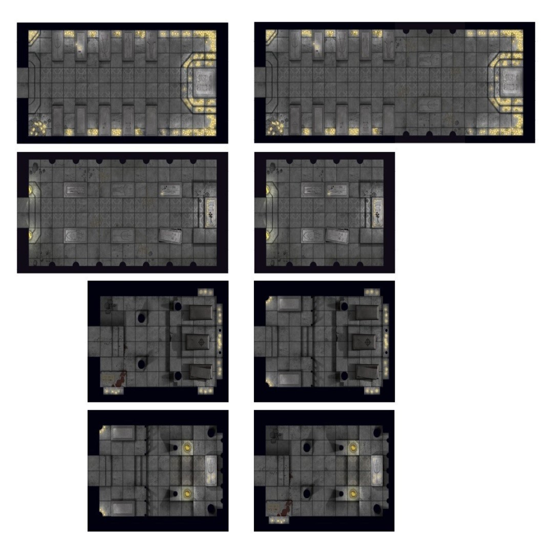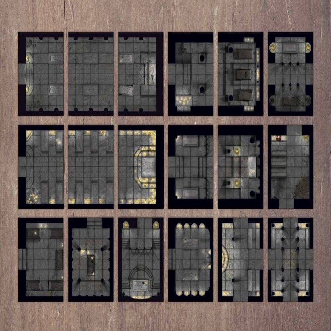 В наборе вы найдете восемнадцать тайлов, которые складываются в двустороннее поле, с обеих сторон вас ждут красочные изображения древних катакомбы. Тайлы покрыты ламинатом, благодаря чему вы сможете делать на них пометки с помощью фломастера. Приключения продолжаются!