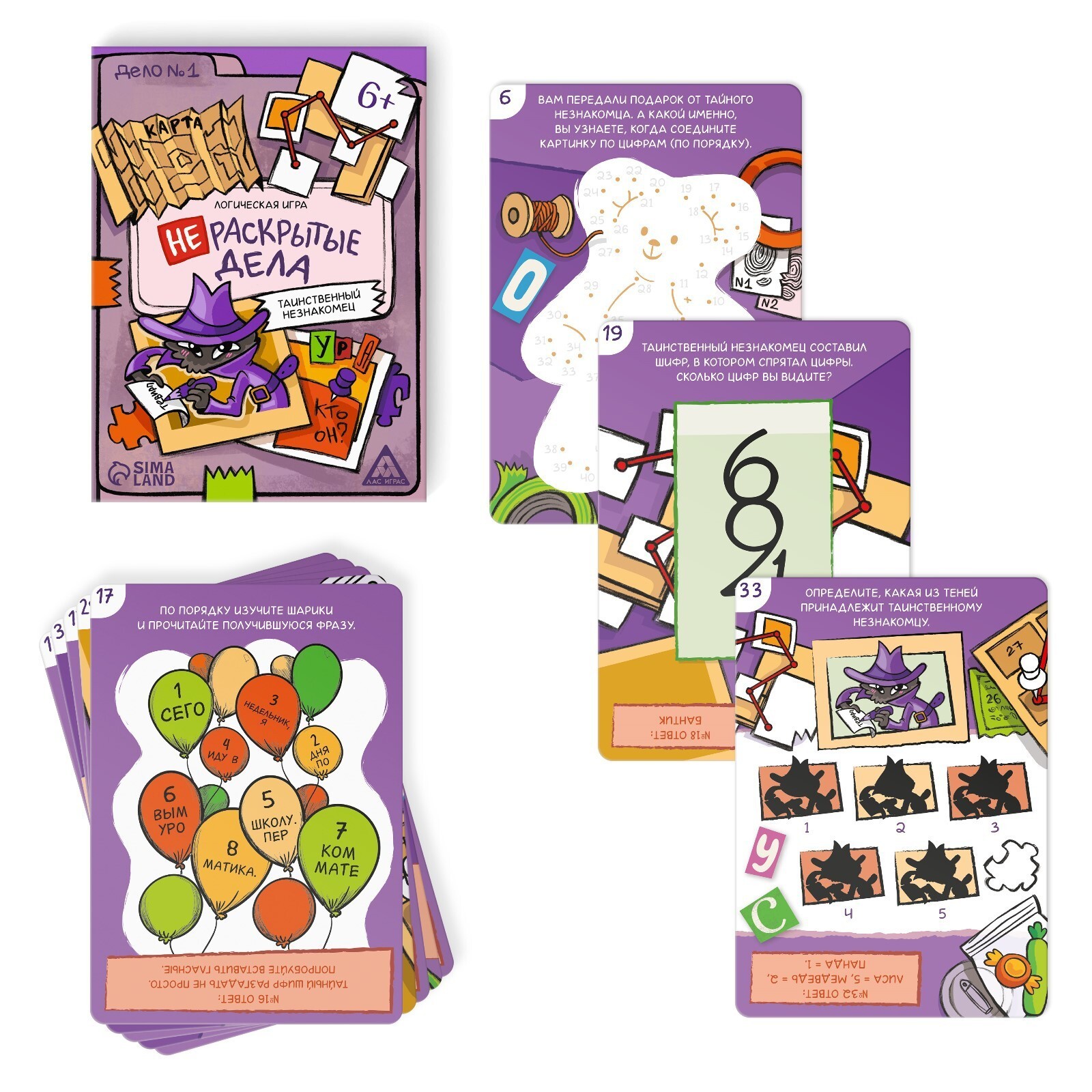 Таинственный незнакомец все время ускользает от вас, но пришло время его найти. Одному игроку, или компании предстоит раскрыть новое сложное дело, в котором будет множество заданий и головоломок. На двусторонних картах вас ждут ребусы, задачи на логику и внимательность, составление слов из определенных букв и необычные шифры. Получится ли у вас найти решение?