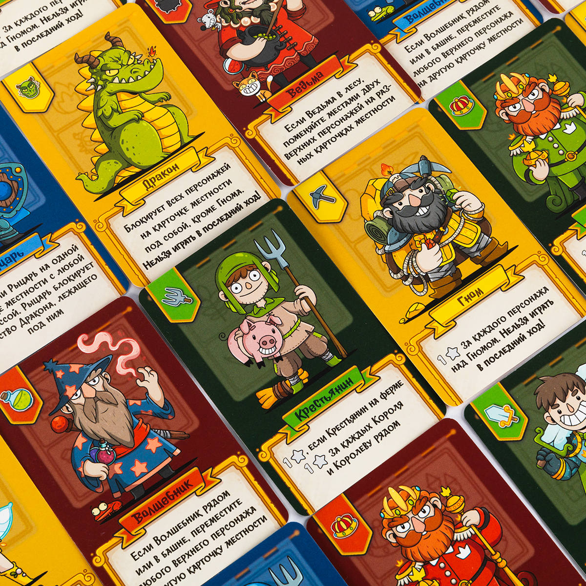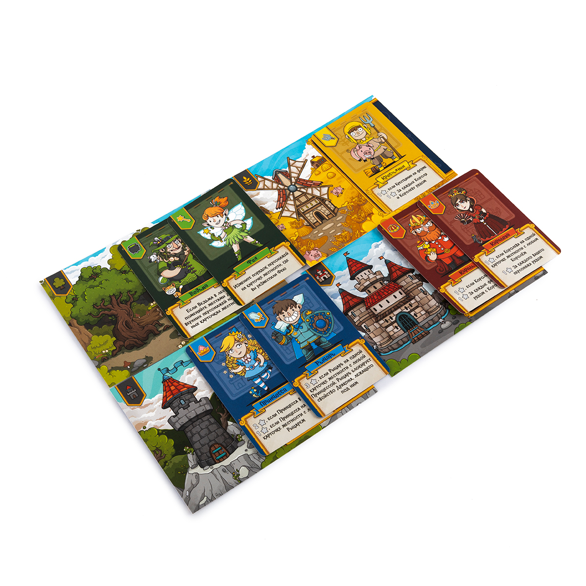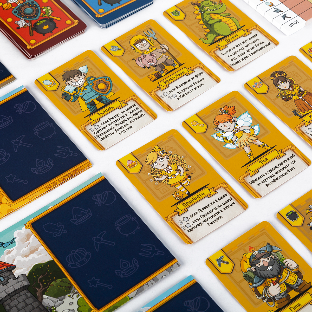 - 12 карточек местности- 40 карточек персонажей- блокнот для подсчёта очков- правила игры