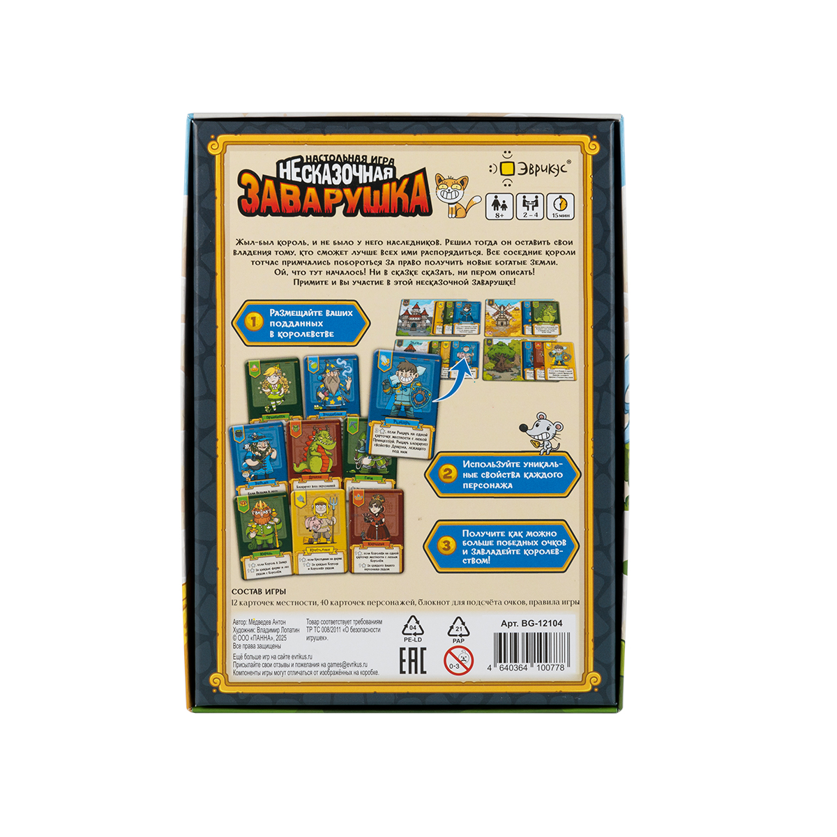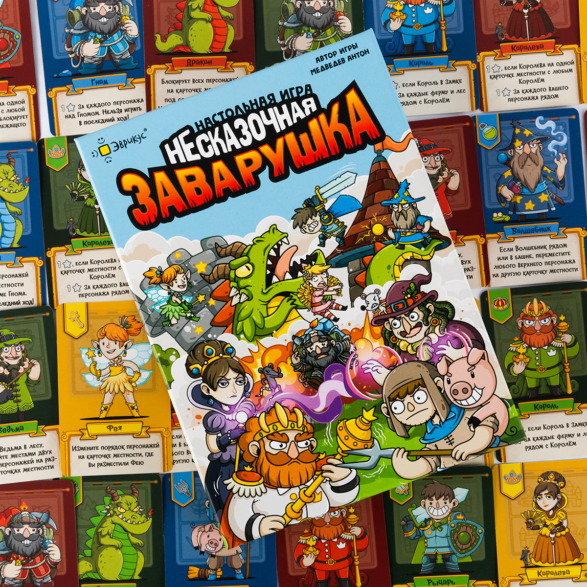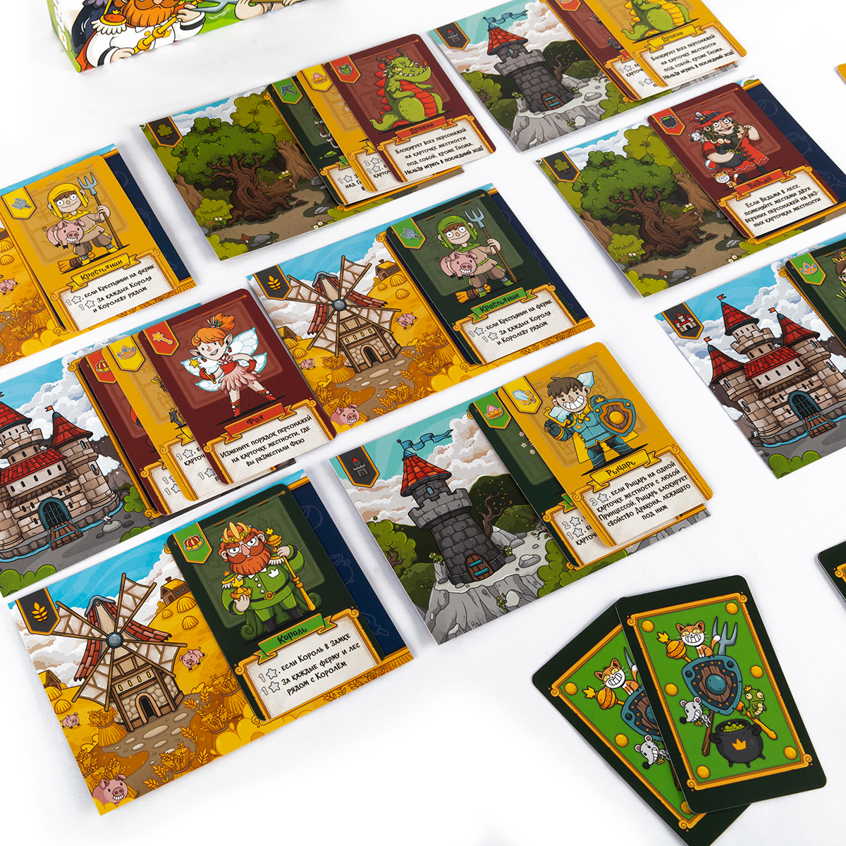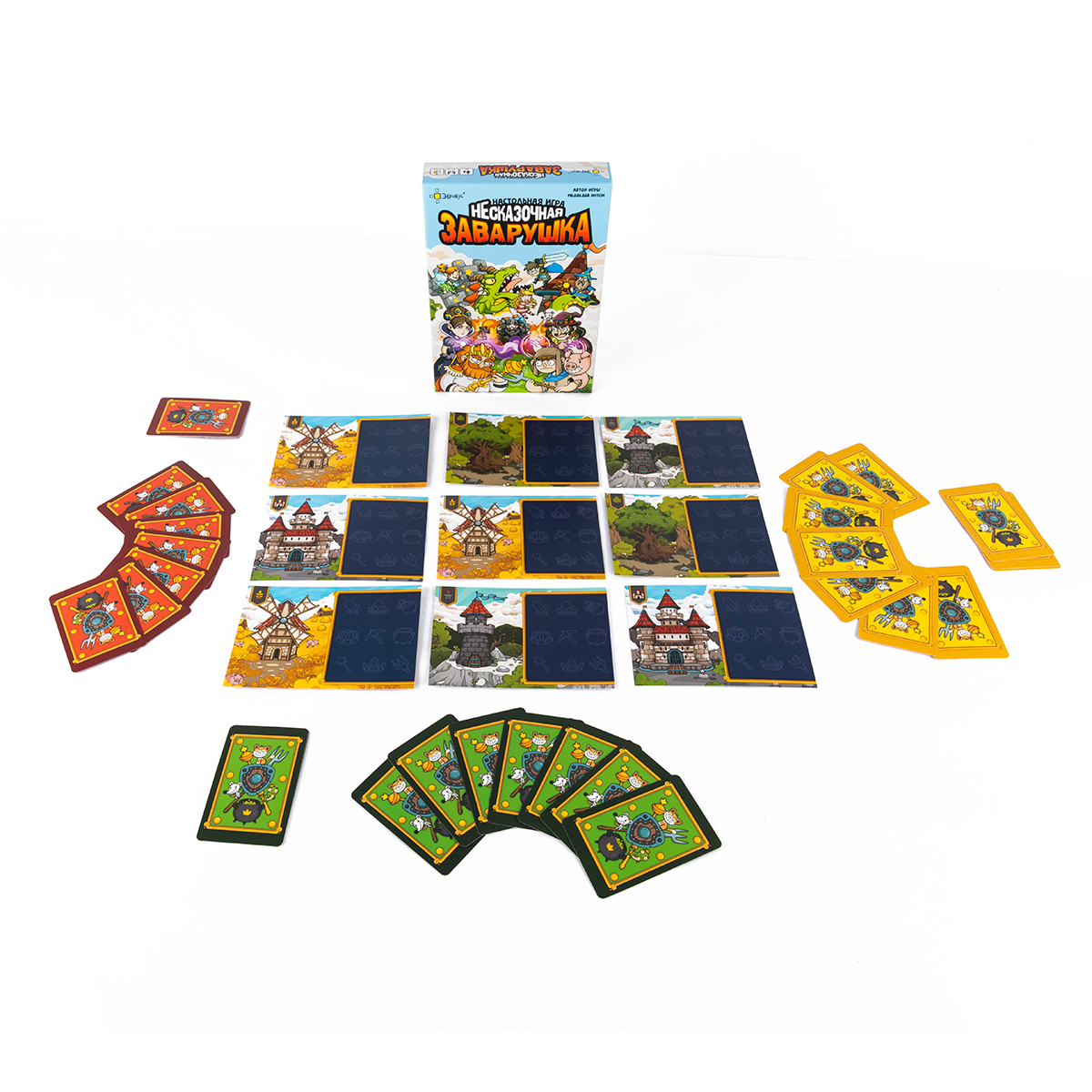 - 12 карточек местности- 40 карточек персонажей- блокнот для подсчёта очков- правила игры