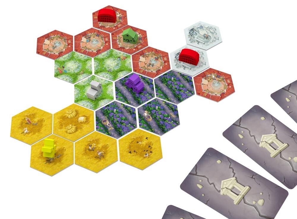 Покорите земли разрушенной империи! Вместе с другими игроками станьте хитрым стратегом, желающим получить наибольшую прибыль со своей местности. Получив на руки в начале игры пять тайлов земель и несколько жетонов построек, участники выстраивают свои владения и расставляют на них здания. Каждая земля в комбинации с определенной постройкой на ней дает разное количество призовых очков, и для получения максимальной выгоды в игре предусмотрен обмен землями друг с другом. Постарайтесь собрать наилучшую комбинацию богатых минералами карьеров, или цветущих виноградников, - в конце игры количество построек и количество типов местности сыграют решающую роль. Докажите, что вы лучший предприниматель на этой земле и станьте победителем!