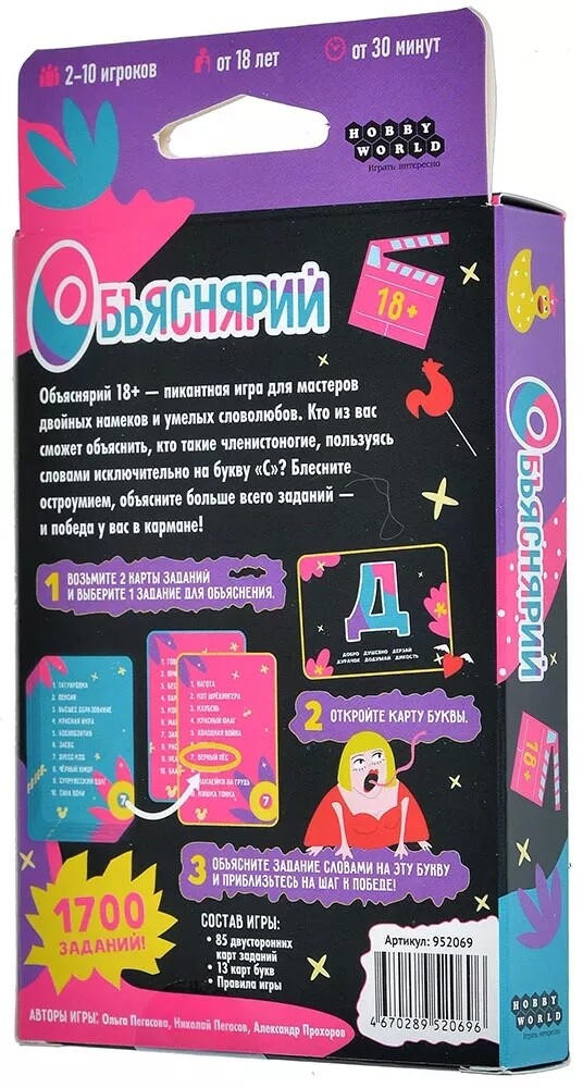 85 двухсторонних карт заданий13 карт буквПравила игры