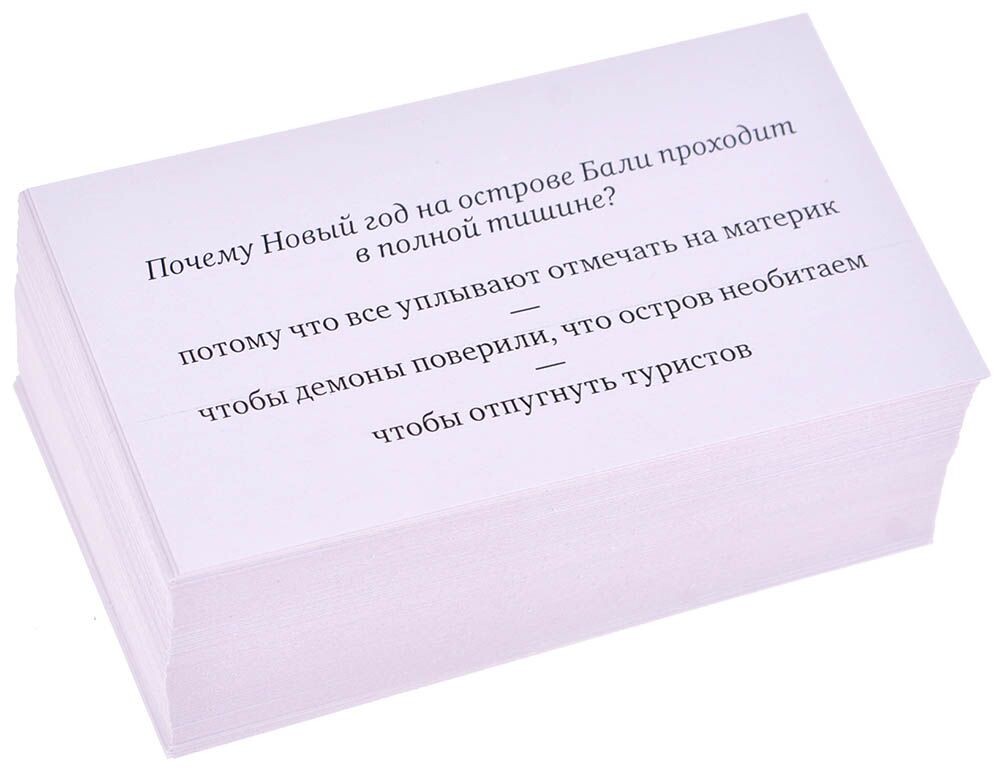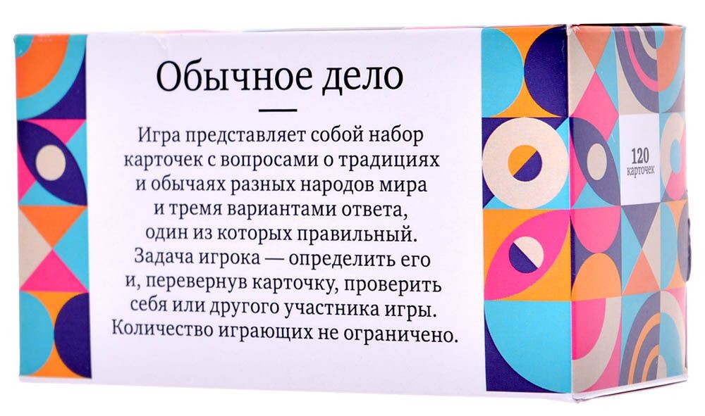 Количество народов мира поистине велико, а традиций и обычаев у них безграничное множество. Данная игра проверит ваши знания по этим критериям и предложит посоревноваться в выборе правильных ответов. В компактной упаковке вы найдете карты с вопросами по обычаям и традициям, а на обратно стороне каждой карты будет три варианта ответа. Кто даст правильный вариант, станет на шаг ближе к победе. Кто сможет набрать наибольшее количество очков и стать победителем?