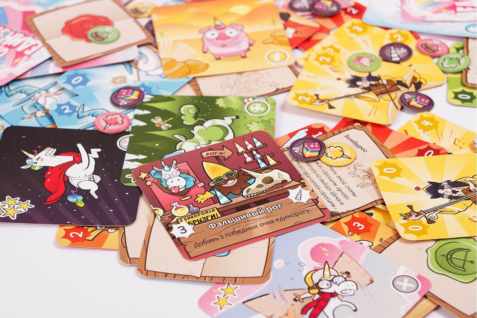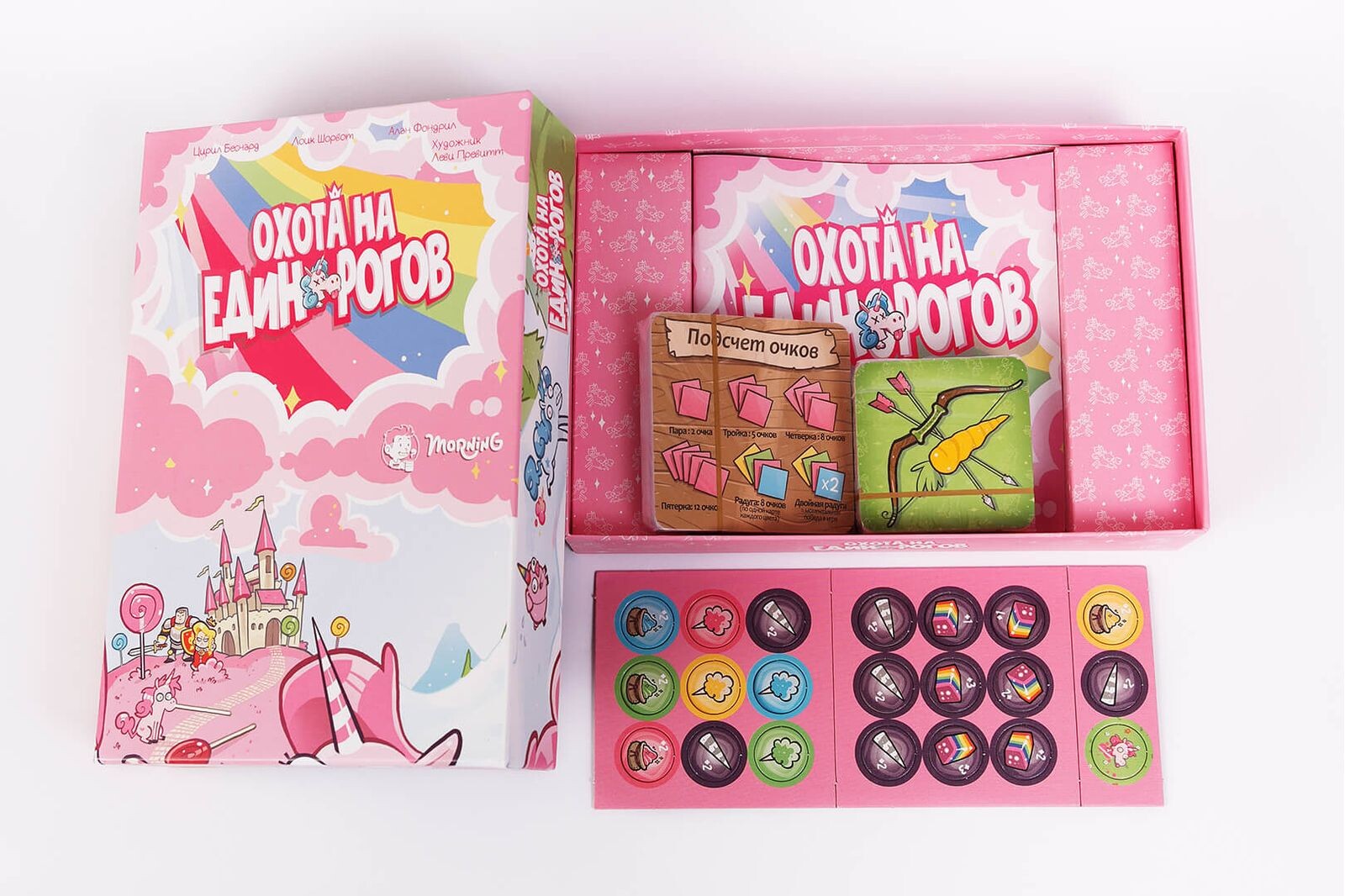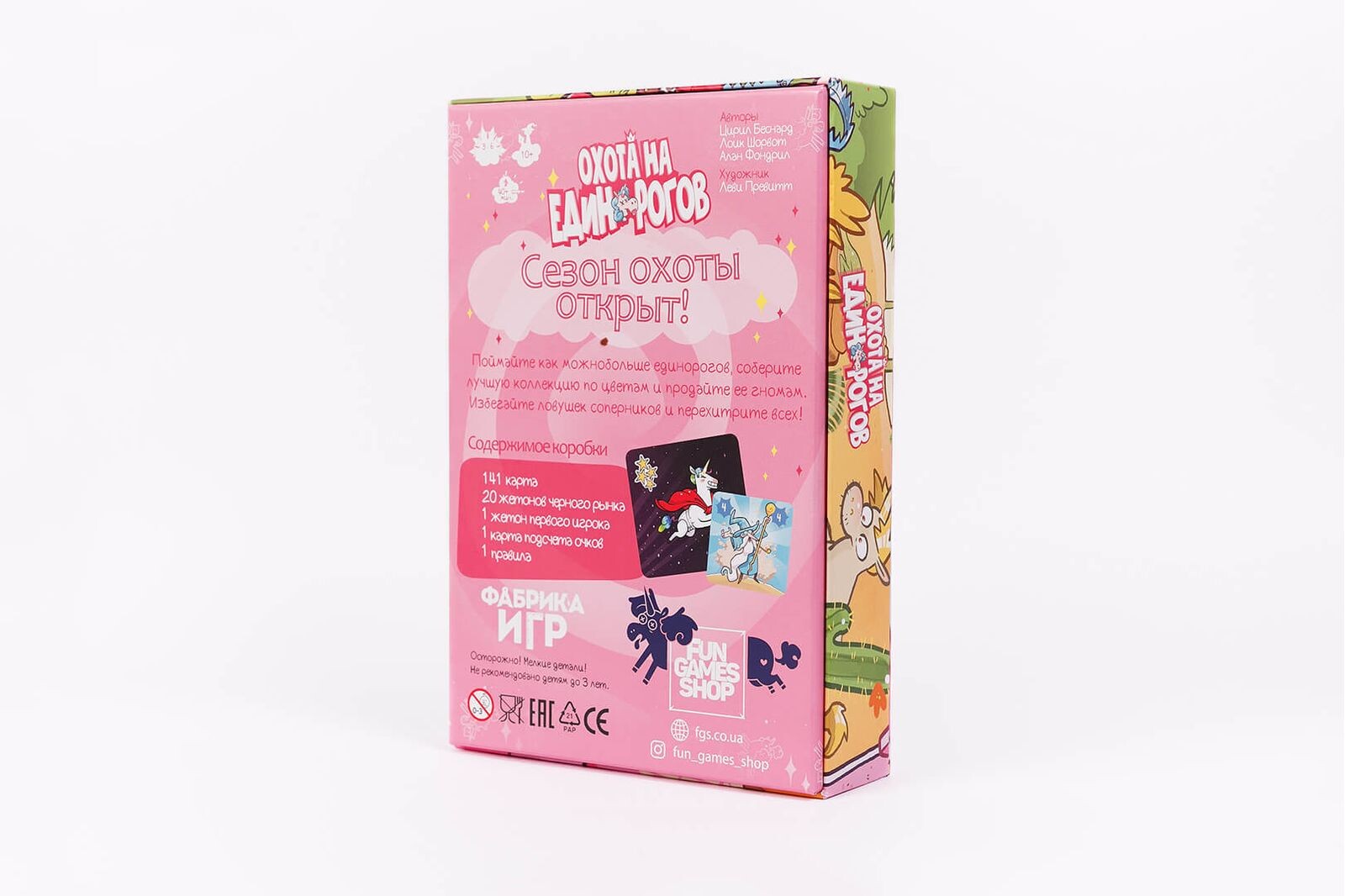 В данной карточной игре участникам предстоит отловить как можно больше единорогов. Причем, ценятся сказочные животные одинаковых цветов, поэтому игрокам придется постараться, чтобы собрать целую коллекцию и продать ее гномам на черном рынке. Помните, что соперники не дремлют, и постараются с помощью карт ловушек замедлить вас. Не попадитесь на штрафных свино-единорогов и станьте лучшим охотником!