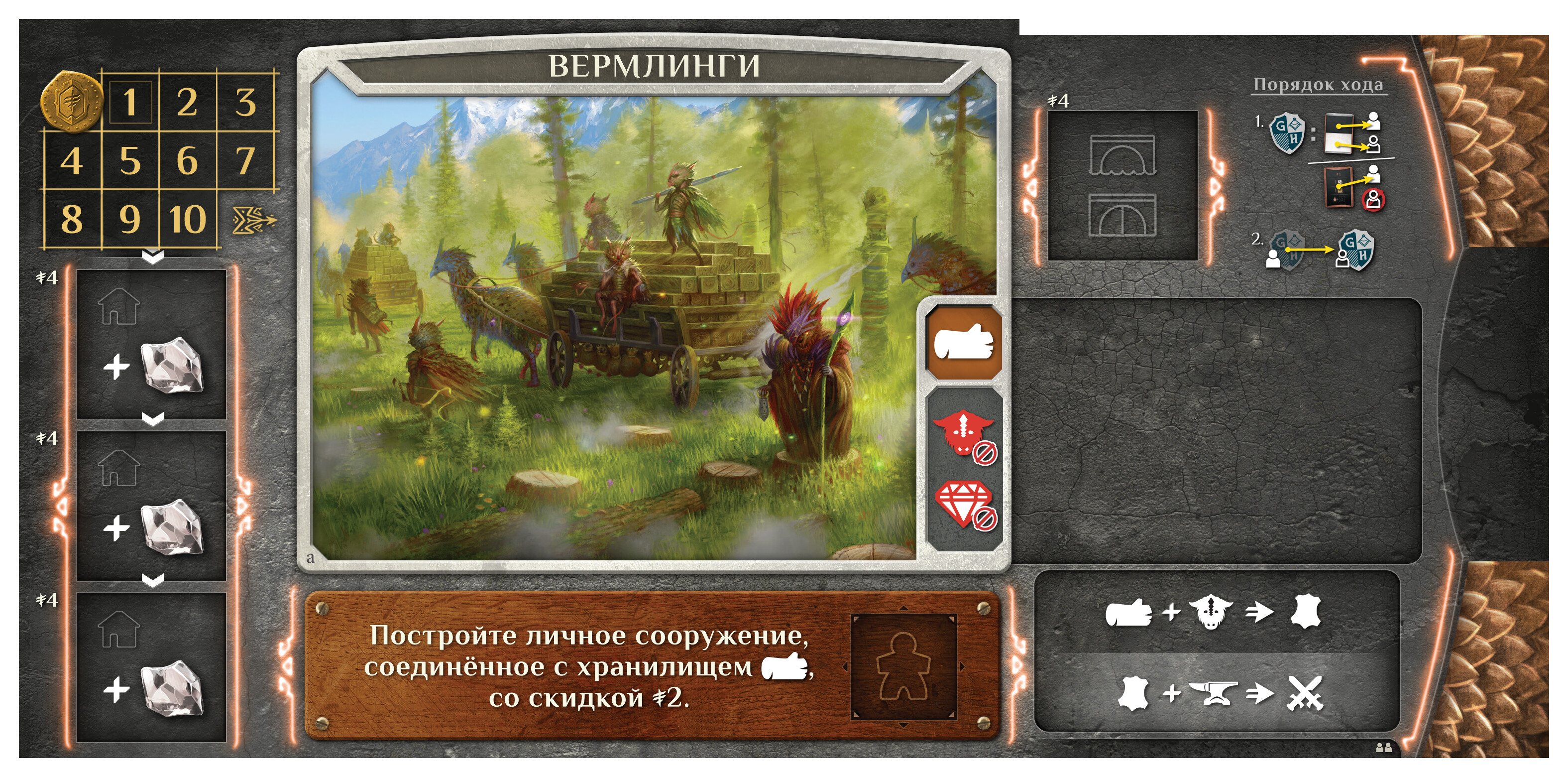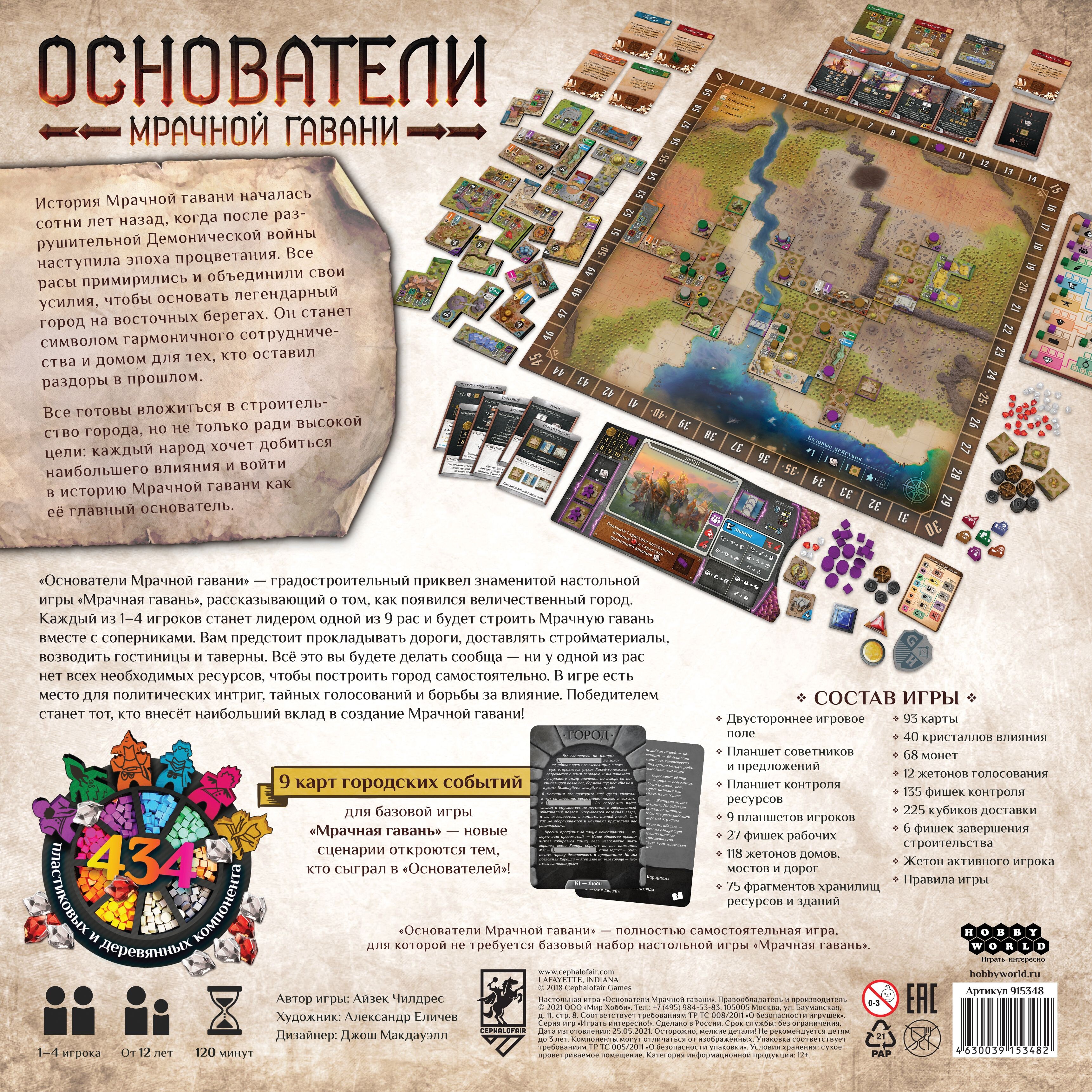В вашем распоряжении окажется множество средств для достижения победы - от банального строительства до дипломатии и политических интриг. Разыгрывая карты действий, игроки работают сообща или поодиночке, набирают в колоду советников, обладающих уникальными свойствами, и все двигаются к одной цели - построить Мрачную Гавань, известную по игре "Gloomhaven. Мрачная гавань". Кто станет победителем в этом непростом деле?