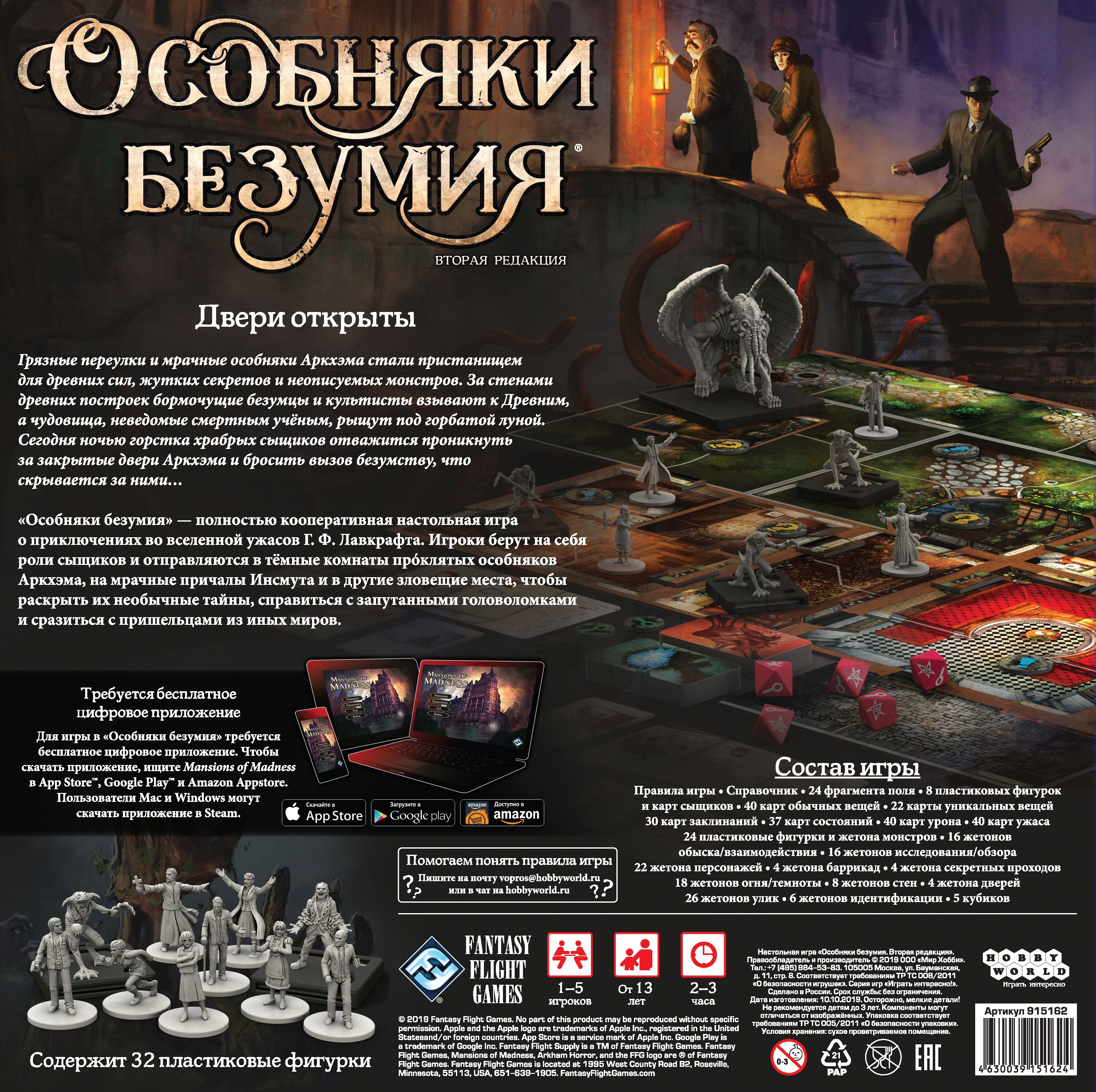 Взгляните в лицо настоящему ужасу... Объединяйтесь с другими игроками и окунитесь в опасное приключение, полное зловещих тайн и ужасающих угроз. В роли сыщиков исследуйте территорию в поисках улик, разгадывайте головоломки, принимайте участие в смертоносных схватках и найдите ответы на все вопросы. Несколько сценариев предложат вам уникальные задачи, а немаловажной частью игрового процесса станет работа в бесплатном приложении-компаньоне, с помощью которого вы сможете совершить множество внутриигровых действий. Поскольку игроки сыщики, сбор улик для прохождения будет в приоритете, ведь тогда вы сможете открыть новые цели и продвинуться дальше. Бросьте вызов своим страхам и попробуйте победить в этой кооперативной игре. Действуйте сообща, обсуждайте дальнейшие действия и пройдите все сценарии! *Внимание! Для игры требуется интернет-соединение и скачивание бесплатного приложения.