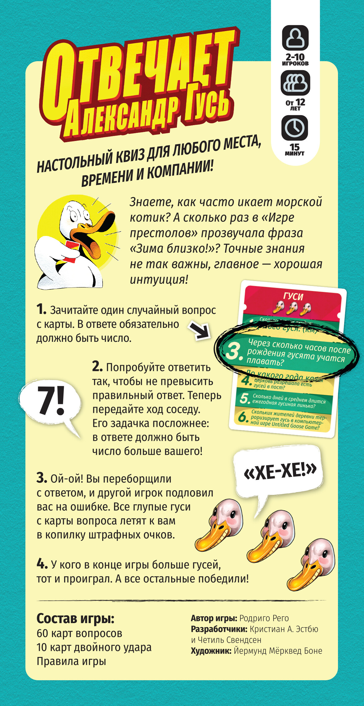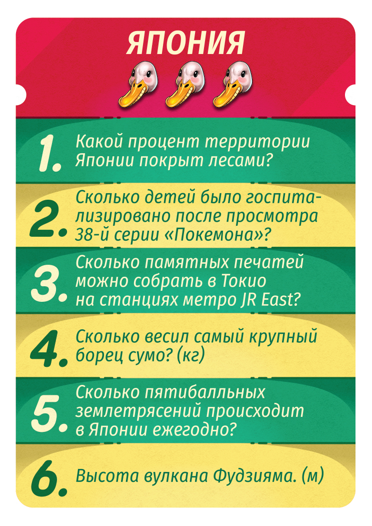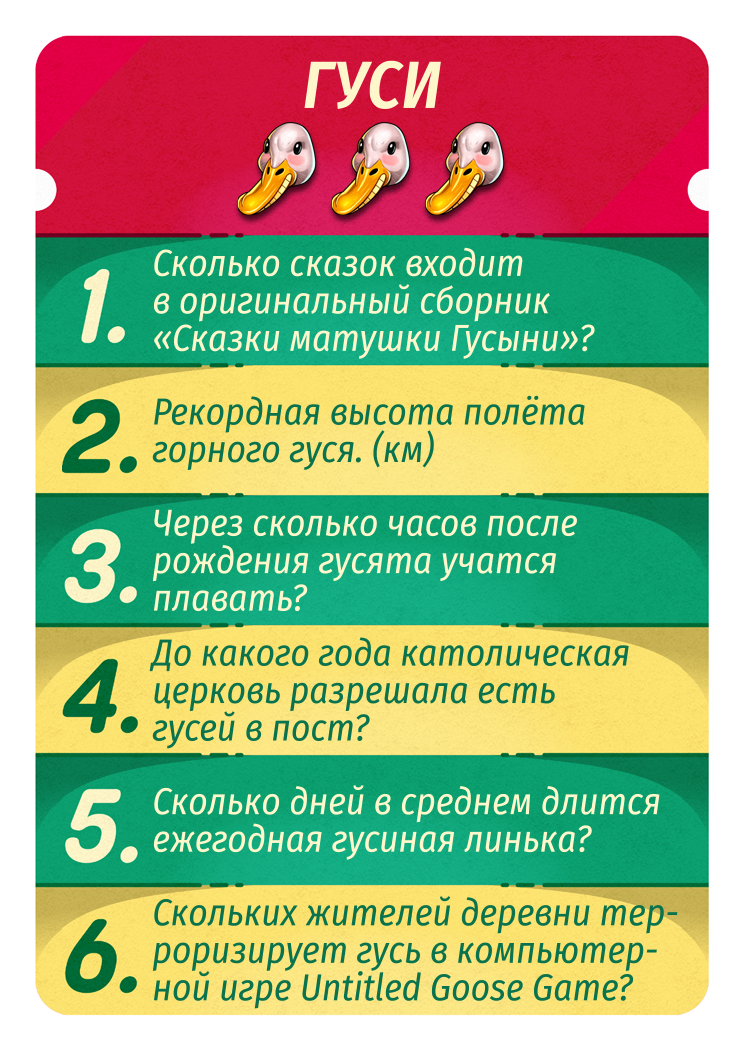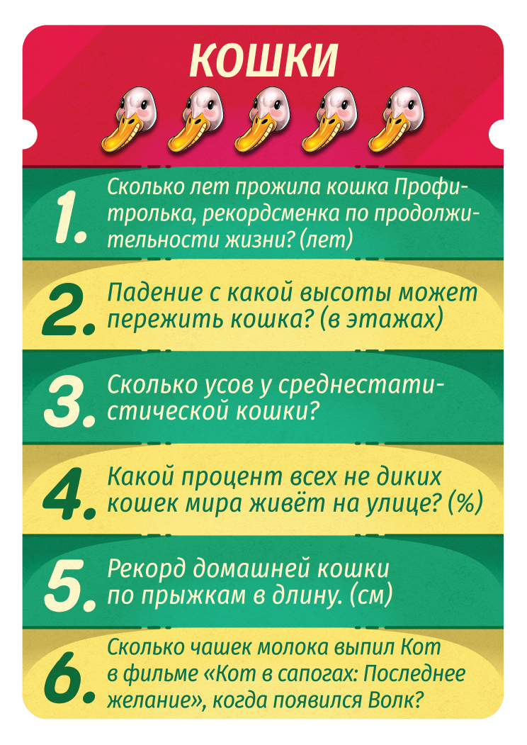 В данной веселой викторине вас ждет множество вопросов на самые разные категории. Но здесь вам не просто нужно ответить, а сделать это с главным правилом игры. Все ответы подразумевают произнесение определенного числа, причем игроки отвечают по очереди, и ответ следующего участника должен содержать число, которое больше цифры, фигурировавшей в ответе предыдущего игрока. Если число все-таки меньше, участник получит на руки несколько штрафных карт. По итогу тот из игроков, кто наберет наименьшее количество штрафных карт, станет победителем!