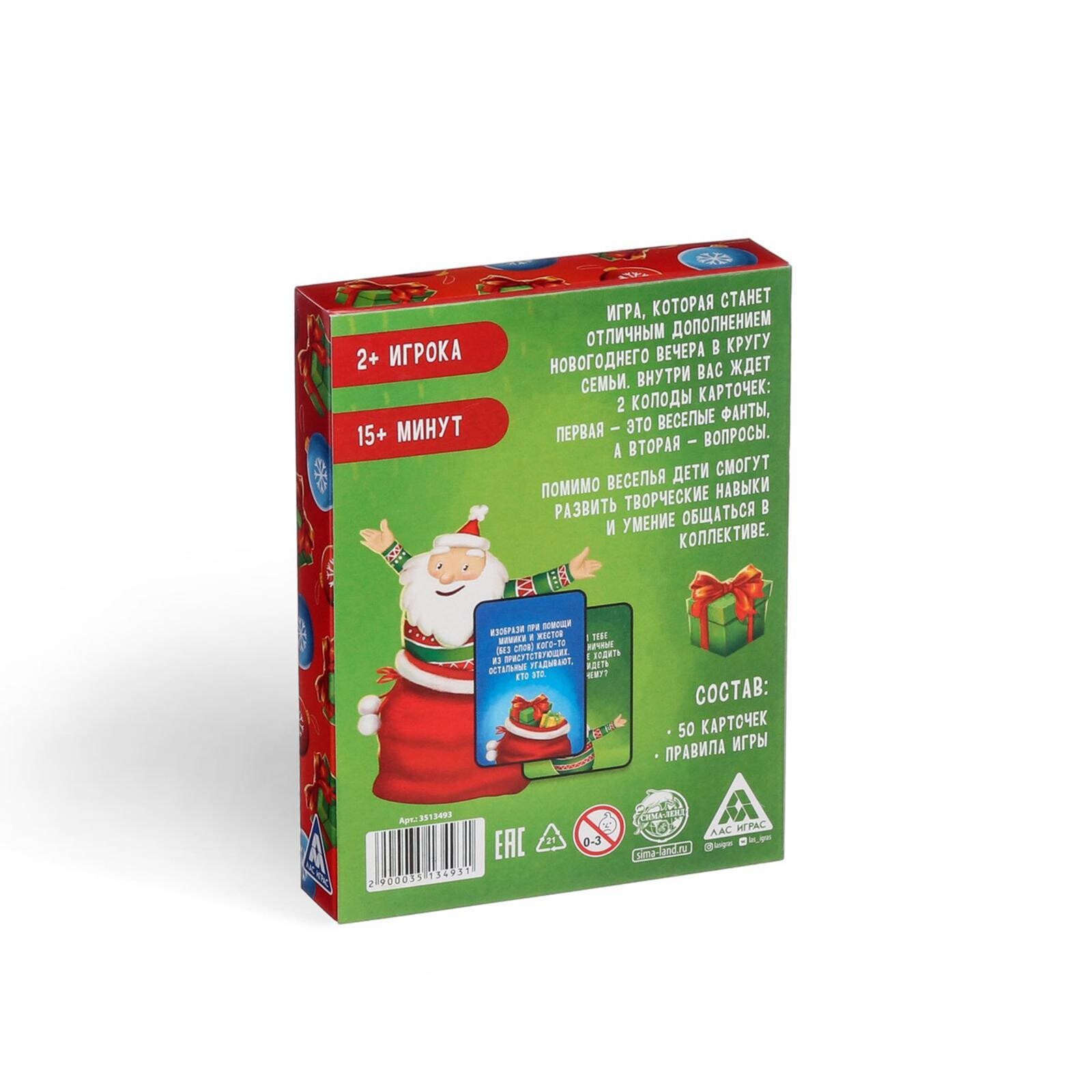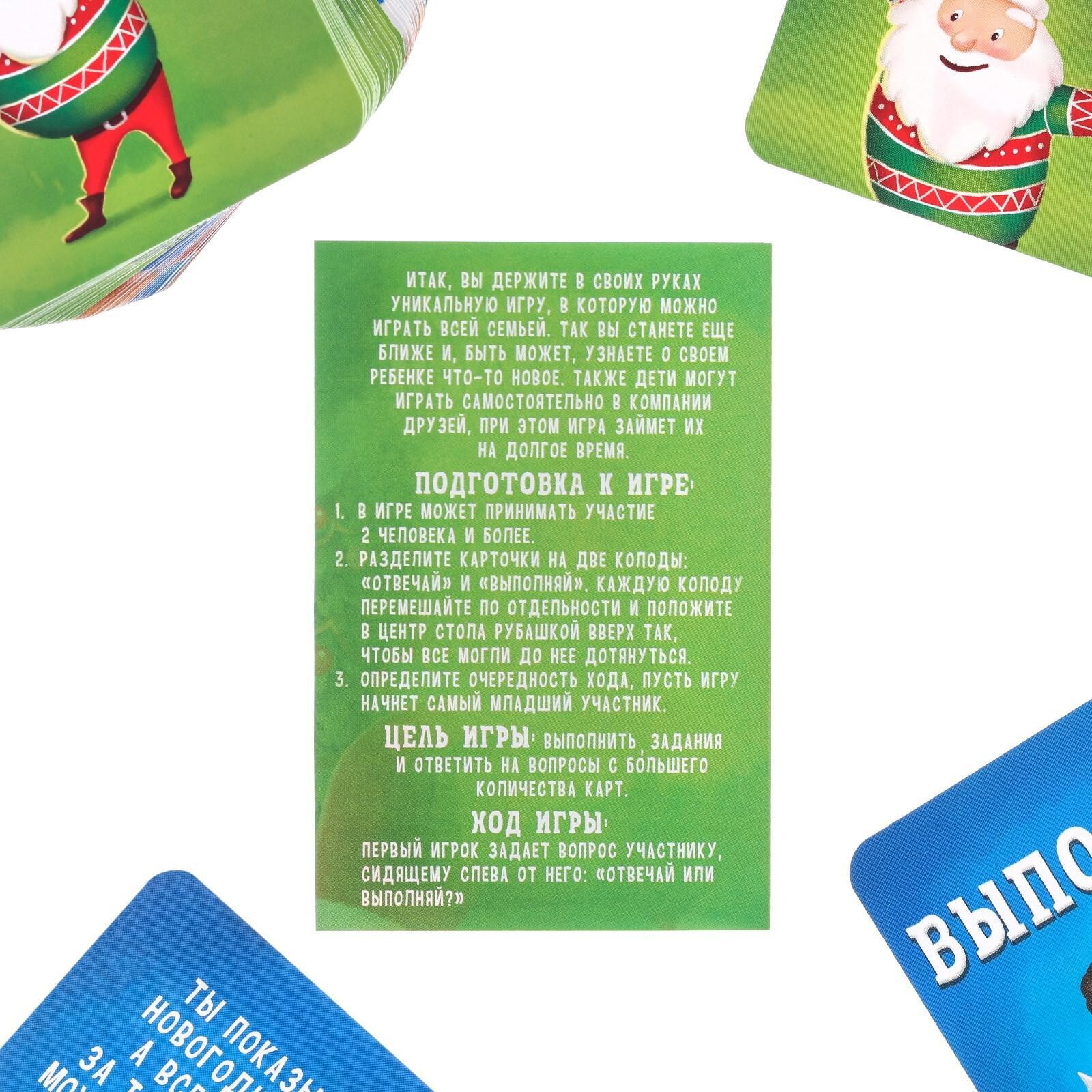 Данная игра предложит вам посоревноваться в выполнении заданий или ответов на каверзные вопросы. В коробке юных игроков ждут две колоды с картами - одна с вопросами, другая с фантами. Выпуск оформлен в новогодней тематике и подойдет для того, чтобы сделать главный праздник в году по-настоящему незабываемым. Тот из участников, кто наберет наибольшее количество карт за выполненные задания и ответы, станет победителем!