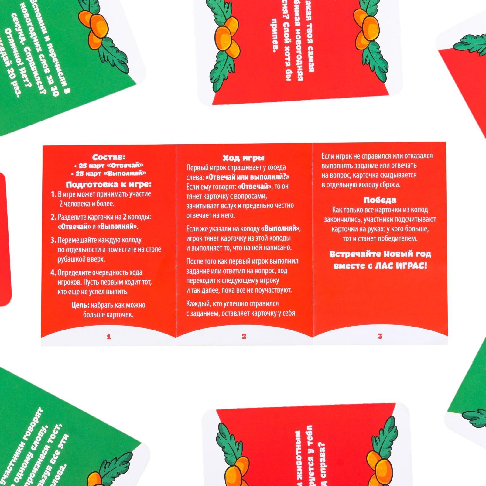 Данный набор карт предназначен для вашего праздника и сделает вечер поистине незабываемым! На картах вы найдете разнообразные задания, которые предстоит выполнить и вопросы, на которые нужно ответить честно. Каверзные вопросы или безумные задания - что предпочтете вы?
