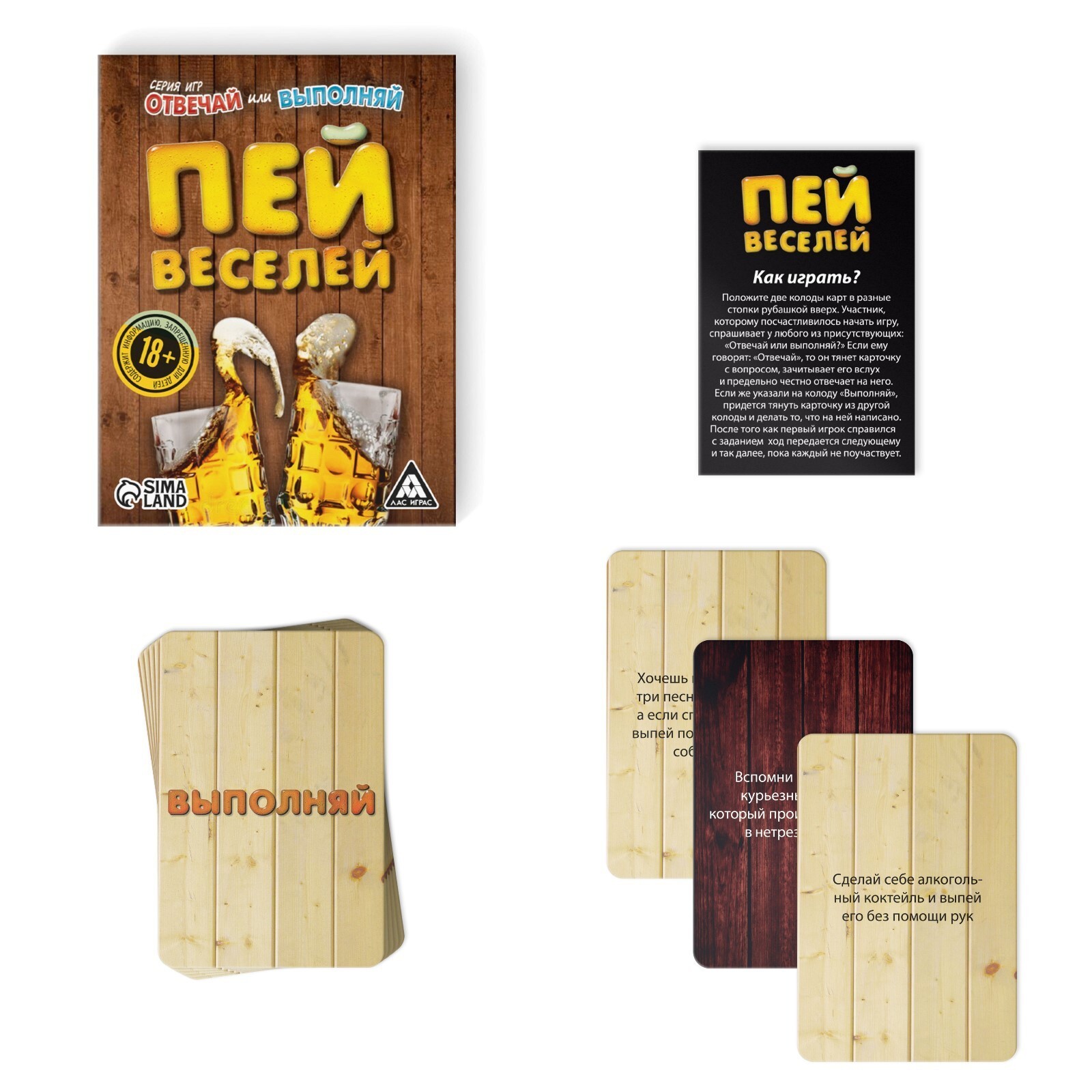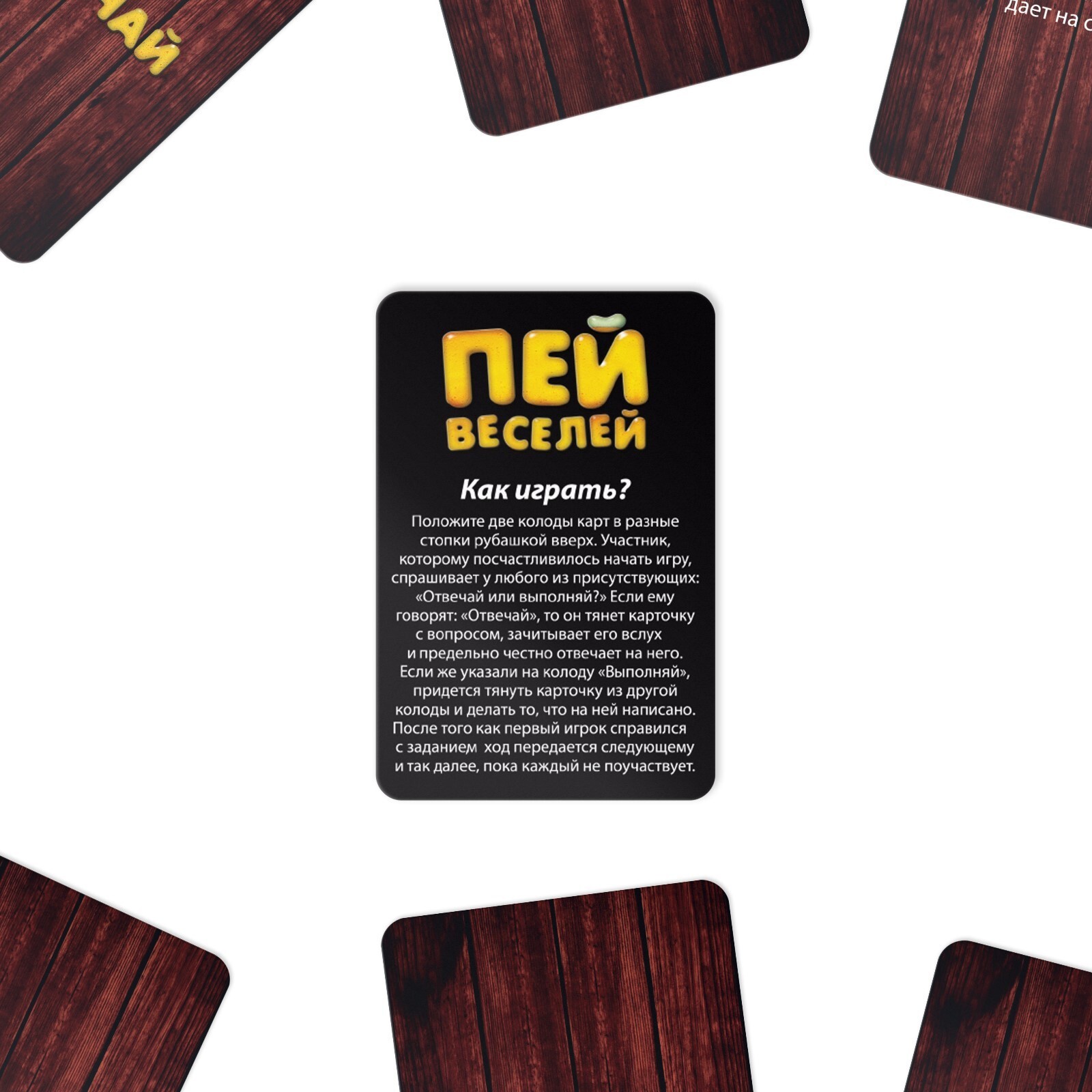 Вас ждет множество веселых заданий для вечеринки! Тяните карту и отвечайте на вопрос честно, или выполняйте какое-нибудь, подчас безумное задание! Пятьдесят карт в коробке - с таким количеством вопросов и заданий скучать не придется. Запаситесь горячительными напитками и приступайте к игре!