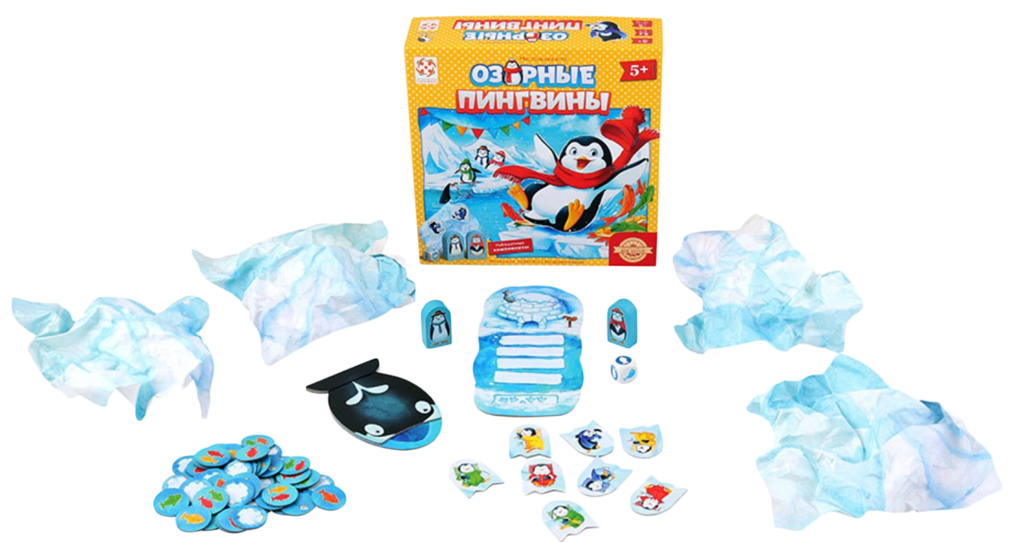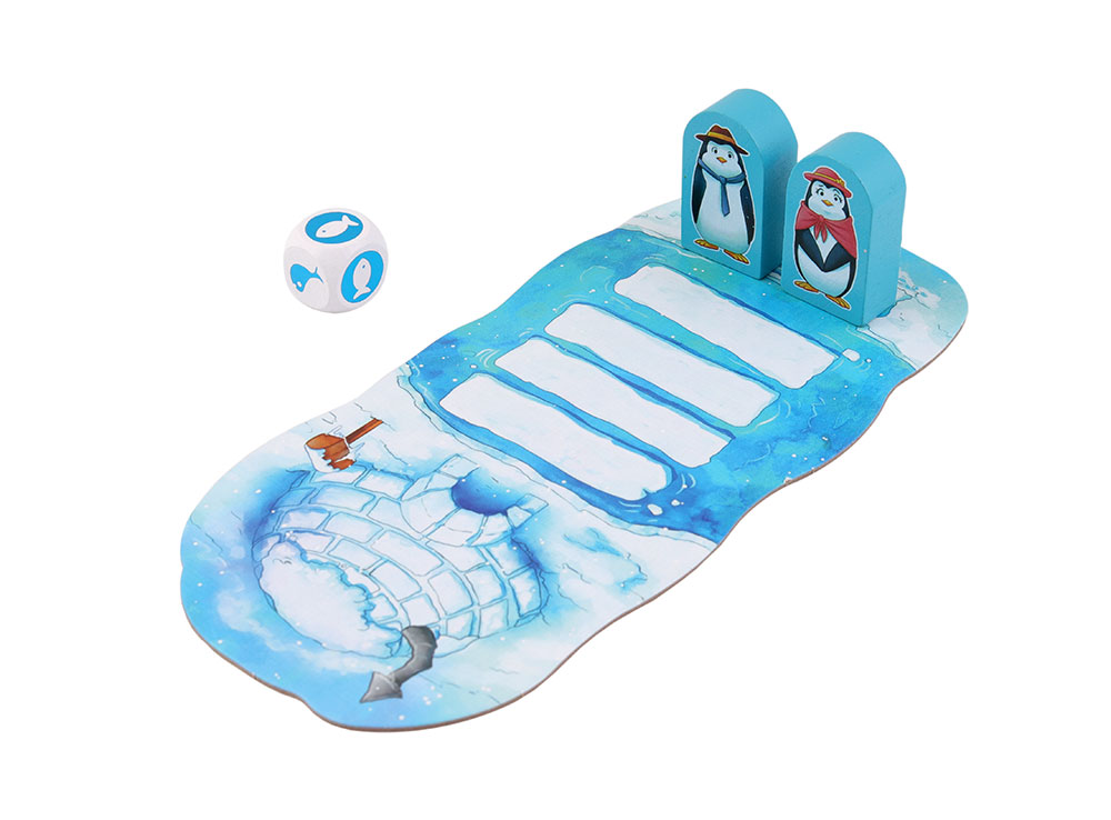 Добро пожаловать на полярную вечеринку! Только родители-пингвины вышли за порог, пингвинята решают весело провести время и собрать как можно больше рыбы. И вы можете им в этом помочь! Кидая кубики, игроки соревнуются между собой на пути к победе. В зависимости от того, что выпало на кубике, участник может получить себе рыбу, или несколько, а может и не добиться успеха, ведь в озере плавает голодный кит, который тоже не против полакомиться рыбешкой. Не стоит забывать, что родители скоро вернутся, поэтому действовать следует быстро, и вовремя вернуться домой. Кто сможет собрать как можно больше рыбы, станет самым отважным пингвиненком и победит!