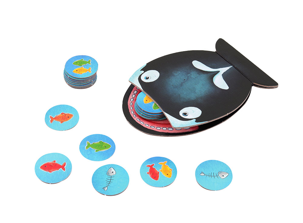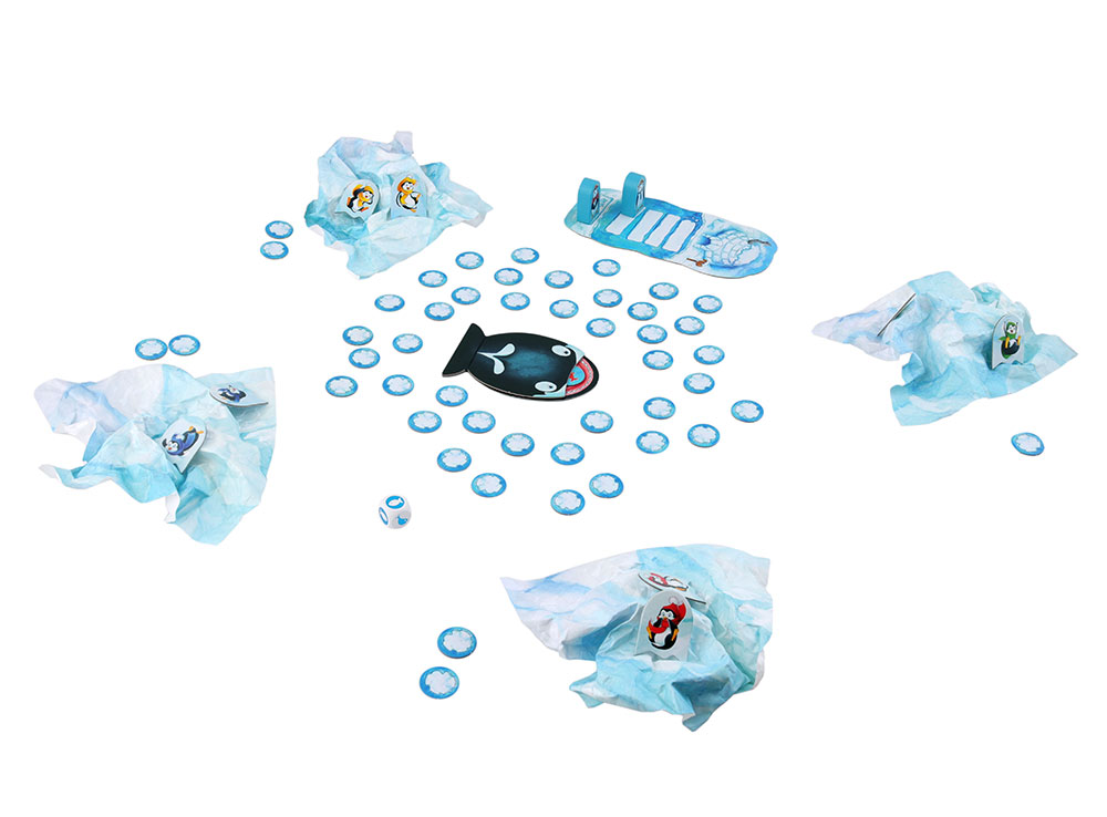 Только родители-пингвины вышли за порог, пингвинята решают весело провести время и собрать как можно больше рыбы. И вы можете им в этом помочь! Кидая кубики, игроки соревнуются между собой на пути к победе. В зависимости от того, что выпало на кубике, участник может получить себе рыбу, или несколько, а может и не добиться успеха, ведь в озере плавает голодный кит, который тоже не против полакомиться рыбешкой. Не стоит забывать, что родители скоро вернутся, поэтому действовать следует быстро, и вовремя вернуться домой.