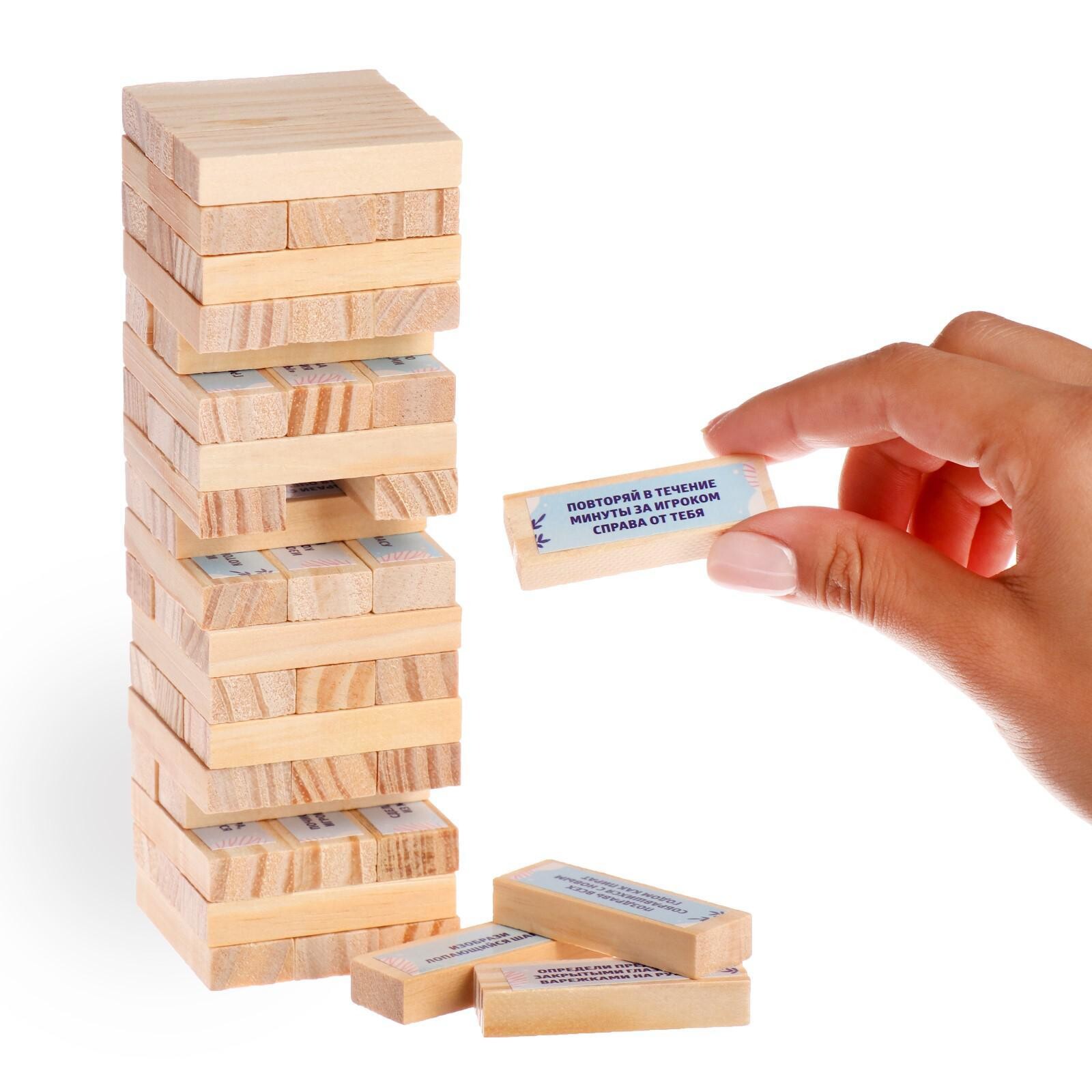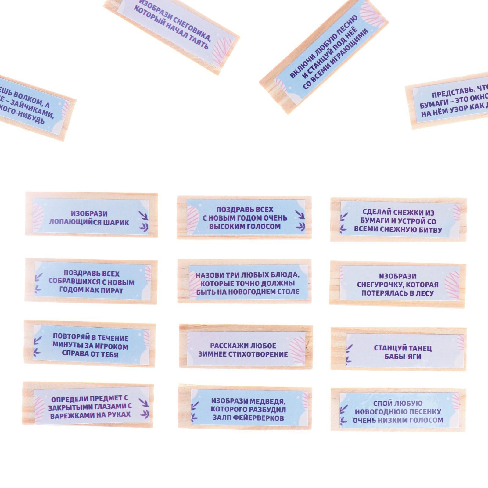 Попробуйте не свалить башню из деревянных брусков, вытаскивая по одному в свой ход и только одной рукой. На некоторых брусках вас ждут фанты в новогодней тематике, и вытащившему такой элемент игроку нужно будет выполнить прочитанное задание. Разнообразьте свое новогоднее застолье и попробуйте обыграть остальных!