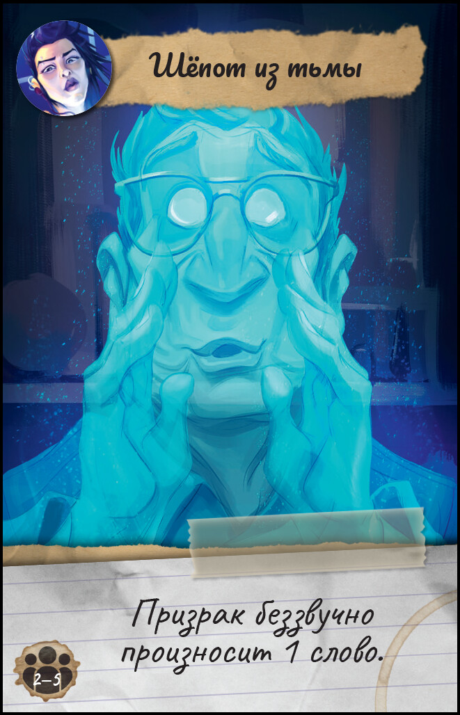 Начинаем спиритический сеанс! В данной компанейской настольной игре участники примут на себя роли детективов, которым предстоит раскрыть преступление. Зацепок и улик почти нет, а поэтому остается только один вариант, - вызвать призрака и узнать у него все детали произошедшего. Но привидение хочет, чтобы победил только один из детективов. Кому же он отдаст предпочтение? Зависит только от вас! Один из игроков берет не себя роль призрака, и узнает детали своей биографии и внешности. Остальные начинают задавать ему вопросы о его смерти, а ответить привидение может разными способами, зависящими от карт контакта - издать какой-либо звук, показать пантомиму, или нарисовать. Детективам предстоит найти ответы на пять вопросов, и кто первым этого добьется, станет победителем! Работайте сообща или посоревнуйтесь в раскрытии преступления - пролейте свет на все тайны и найдите ответы на все вопросы!