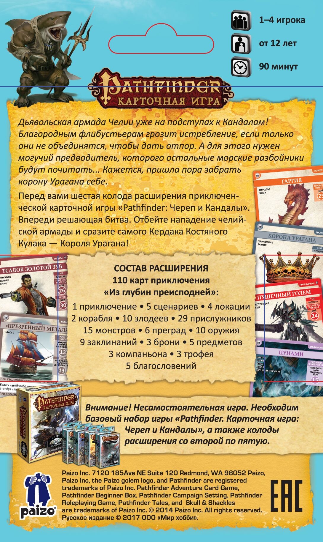 Приключение для персонажей 13-го уровня триумфально завершает кампанию Pathfinder. Череп и Кандалы, а также содержит новые карты для создателя партии, которые позволят поохотиться на самых опасных морских монстров. Ветер в паруса, отправляемся в путь, пираты!