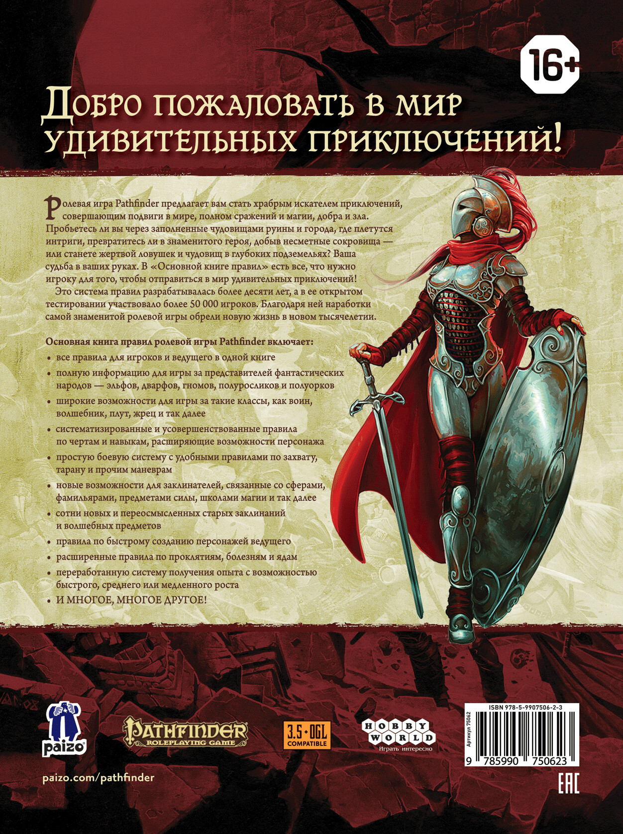 Эта разговорная ролевая игра поднимет ваши фэнтезийные кампании на новый уровень приключений! Ролевая игра Pathfinder предложит игрокам сформировать свои приключения, полные опасных монстров и заманчивой добычи! Выбирайте одного игрока мастером игры, который будет моделировать ситуации, создавайте своих героев и отправляйтесь в путешествие. Книга правил поможет приключенцам ощутить максимум эмоций от игры и подарит множество незабываемых моментов.