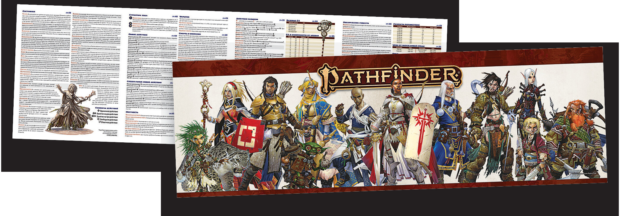 Перед вами незаменимый аксессуар для долгих увлекательных партий настольной ролевой игры Pathfinder. Один из игроков возьмет на себя роль ведущего, контролирующего и направляющего фэнтезийное приключение. Остальные участники станут бравыми героями с разными характерами и вооружением. Роскошная ширма ведущего скроет заметки и результаты бросков кубиков и ускорит партии. На обратной стороне можно будет найти таблицу с уровнем сложности, основной информацией и справкой. Теперь партии станут еще удобнее и увлекательнее!