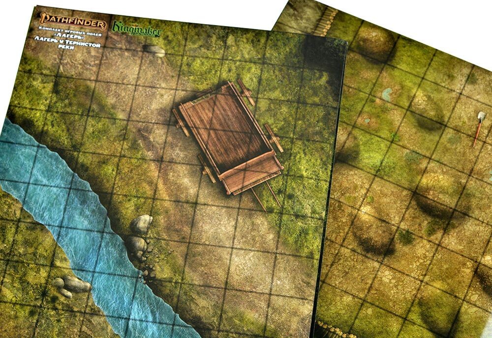 В данном наборе вы найдете два игровых двусторонних поля, каждое из которых красочно и детализировано оформлено и подойдет для ваших ролевых путешествий. Поля заламинированы и размечены по клеткам. Готовьте своих персонажей и отправляйтесь в новые приключения!