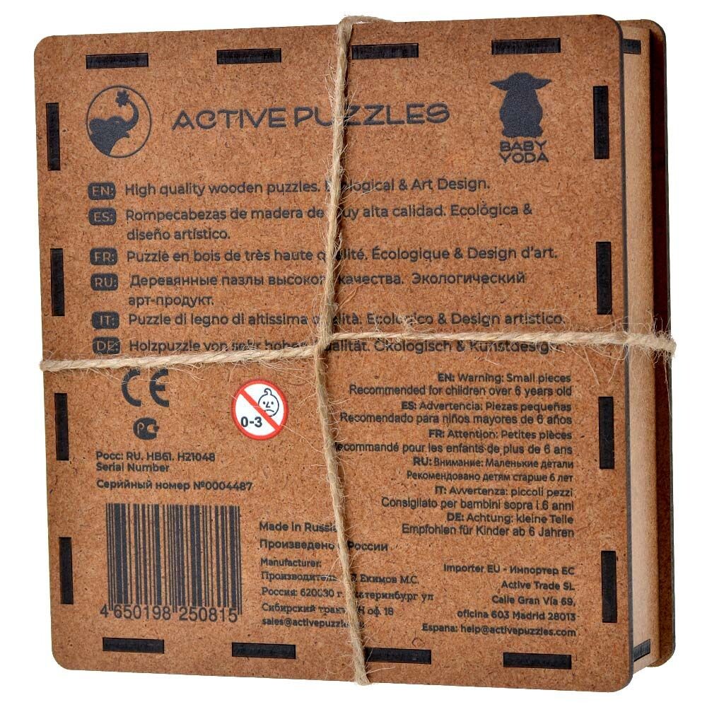 Деревянный пазл содержит изображение любимого многими героя из популярного сериала во вселенной далекой-далекой галактики. Собрав вместе сто деталей разной формы, вы получите красочную иллюстрацию милого персонажа. В собранном виде размер пазла составит 270x270мм.
