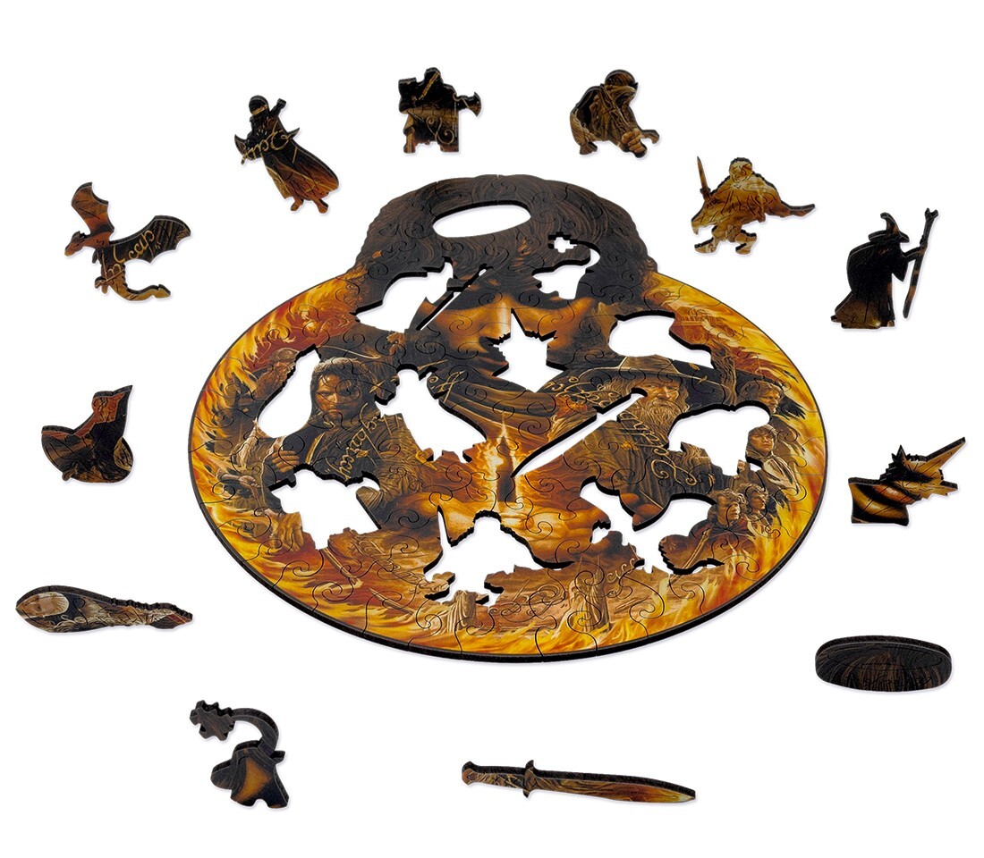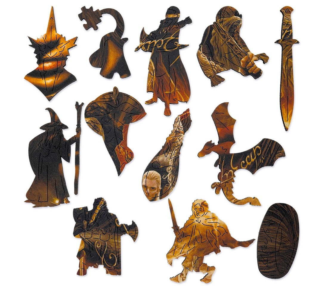 Детали данного пазла изготавливаются из прочного дерева и отличаются высоким качеством. Соберите все элементы вместе и получите иллюстрацию с героями культовой серии фильмов в жанре фэнтези! В коробке вы найдете сто деталей.