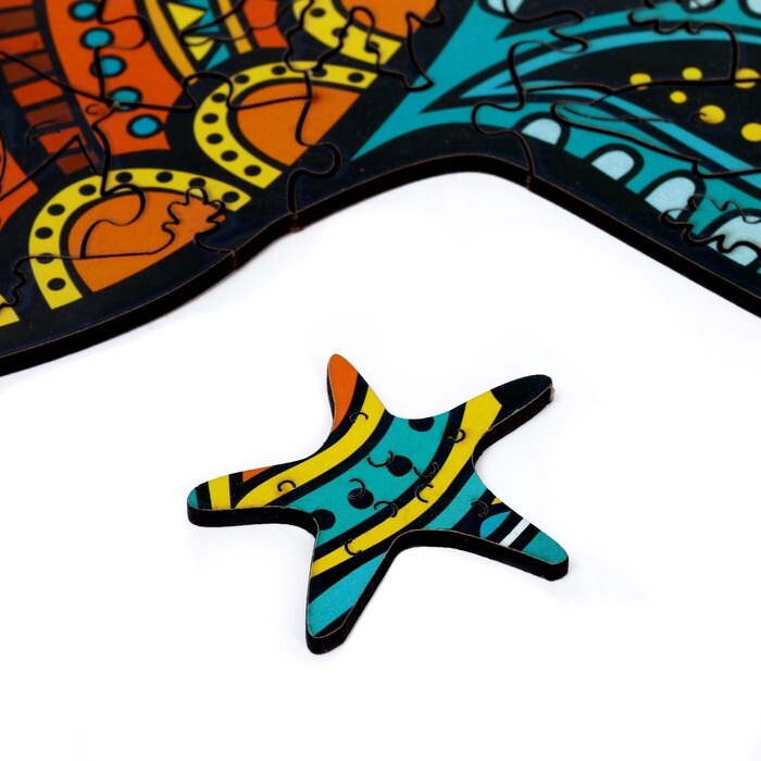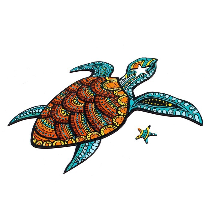 Красочный пазл предложит вам создать яркое изображение черепашки. Детали данного пазла выполнены из дерева, имеют разную форму и обладают высоким качеством рисунка и материала.