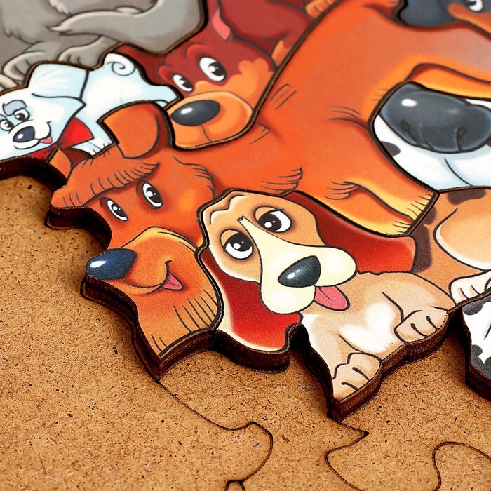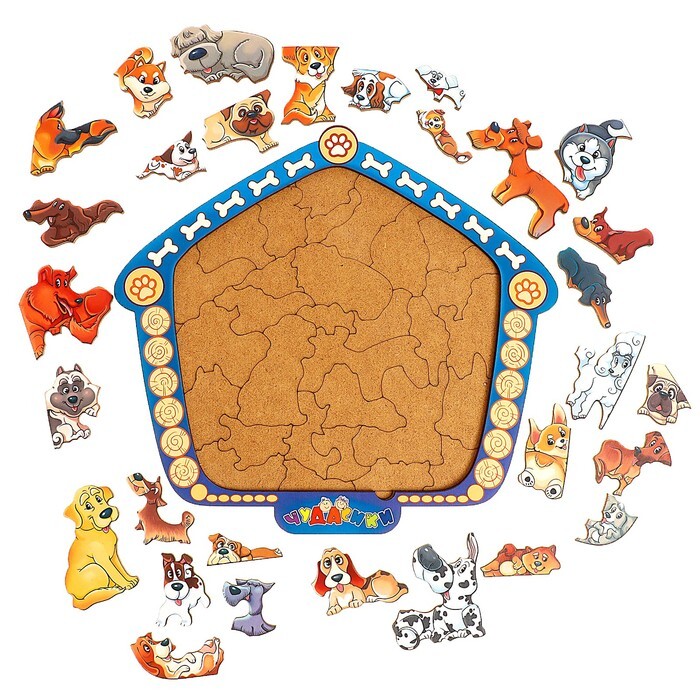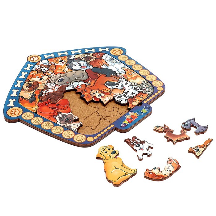 Детский развивающий пазл изготовлен из дерева. Яркие и красочные элементы в виде собак имеют разную форму. Все детали вам нужно собрать на специальном поле так, чтобы всем собакам нашлось место и никто не остался в стороне. Получится ли у вас решить такую задачу?