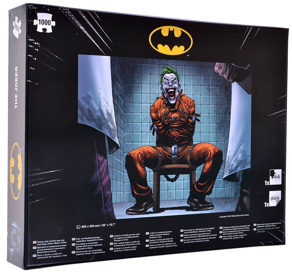 Данный пазл выполнен из плотного картона и состоит из тысячи элементов. Собрав его, вы получите красочную иллюстрацию знаменитого антагониста из комиксов издательства DC.