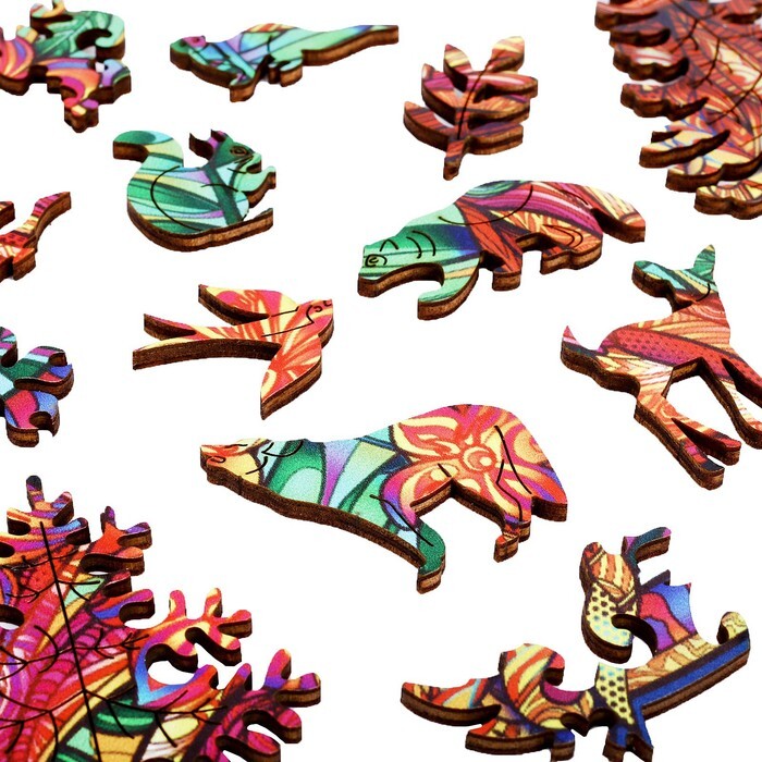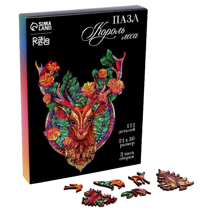 Деревянный пазл станет хорошей зарядкой для ума и предложит вам создать красочное изображение сказочного оленя. Детали пазла изготовлены из дерева и имеют разную форму и размер. В коробке вы найдете сто одиннадцать элементов, которые предстоит собрать в единое целое.