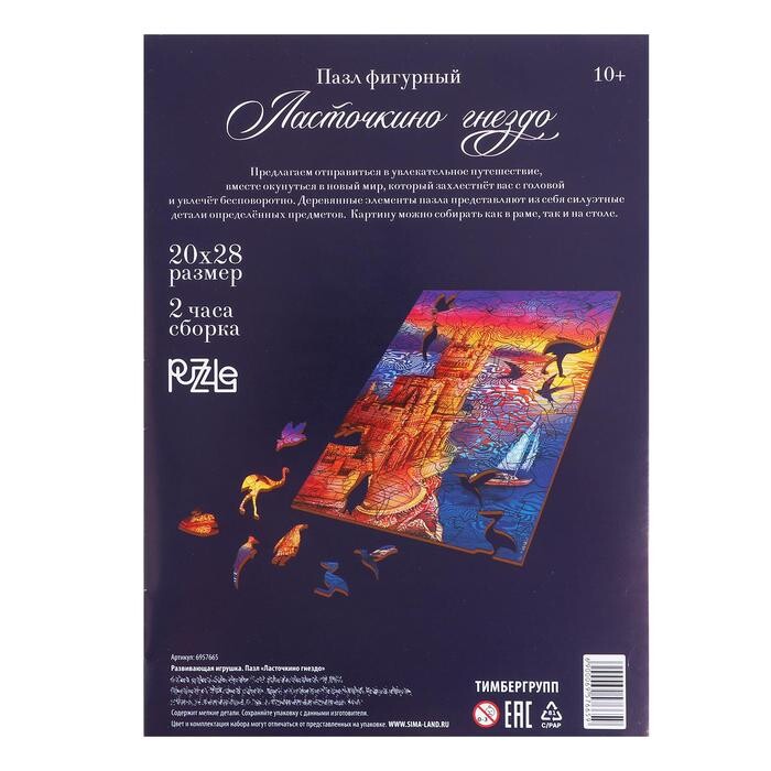 Особенностью данного пазла является то, что в нем используются прочные деревянные детали вместо картонных. Доставайте элементы из коробки с соберите красочную сказочную иллюстрацию!
