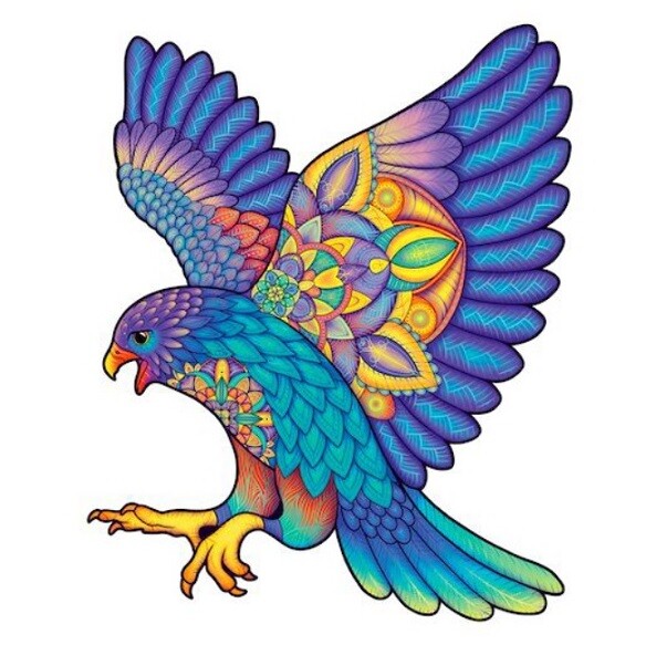 В коробке вы найдете 133 деревянных детали различной формы, с помощью которых сможете создать красочную картину с сапсаном размера 300x240мм.