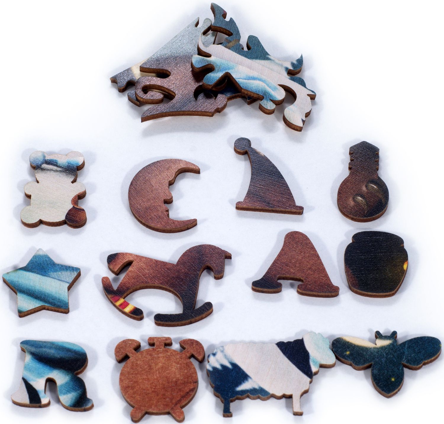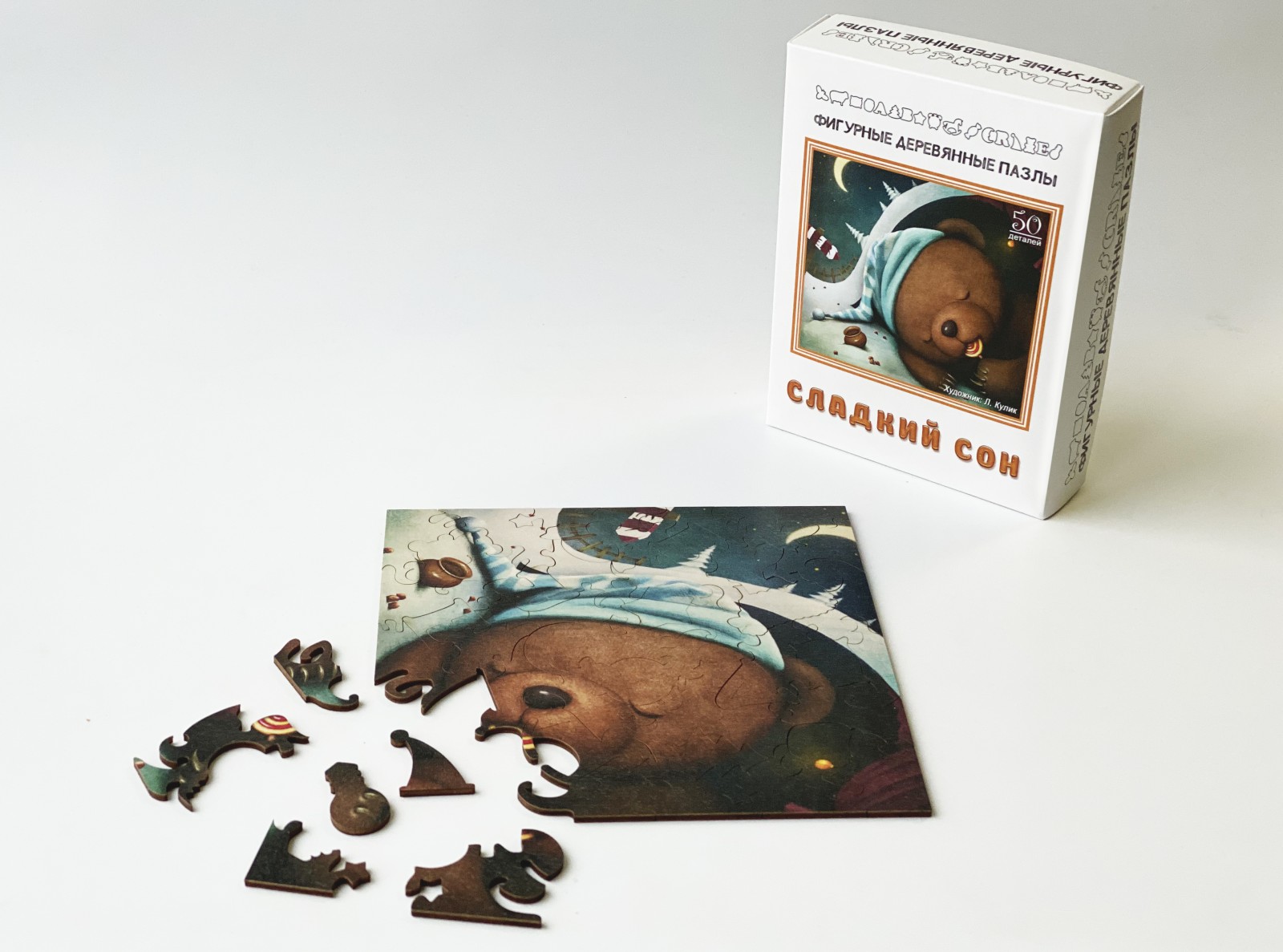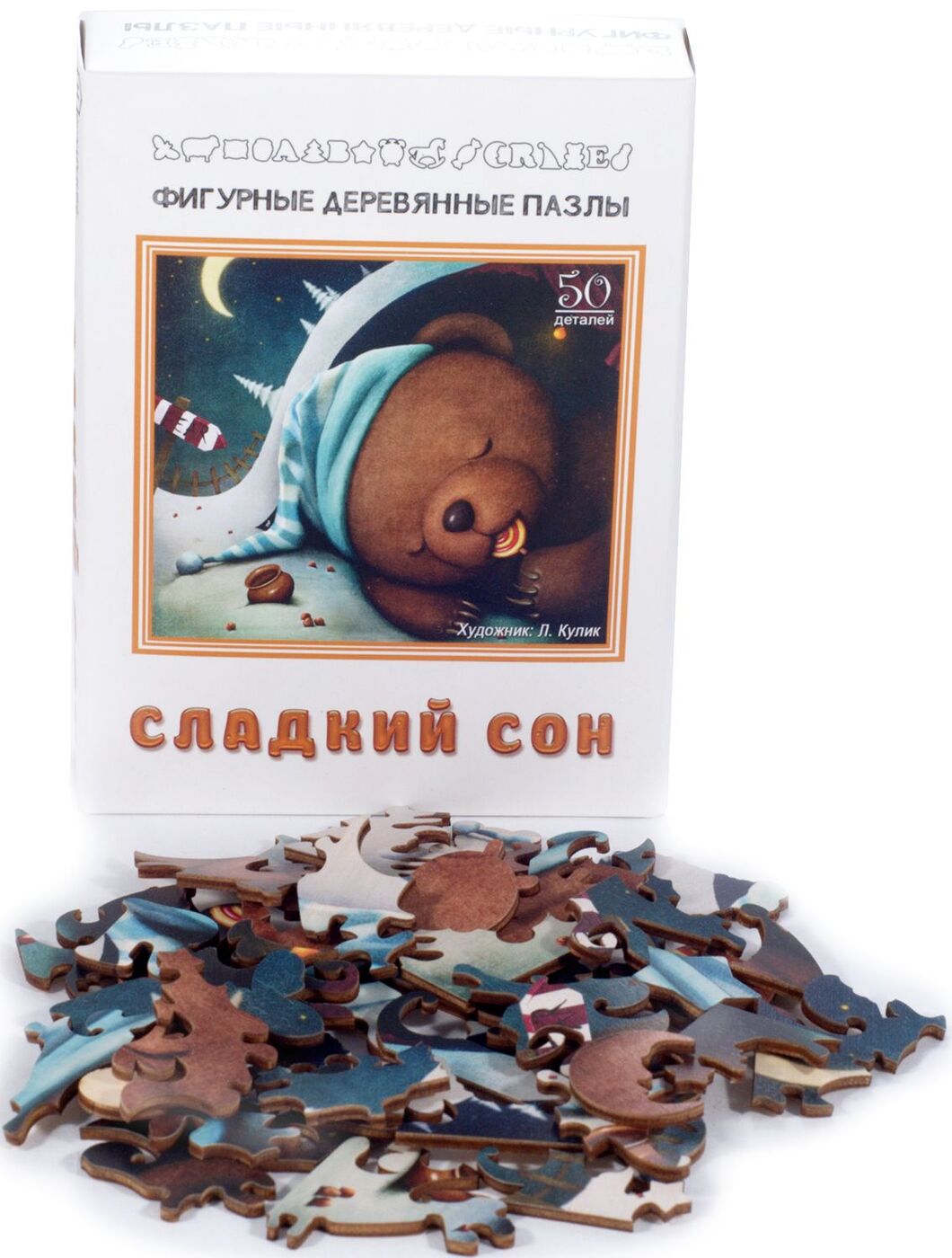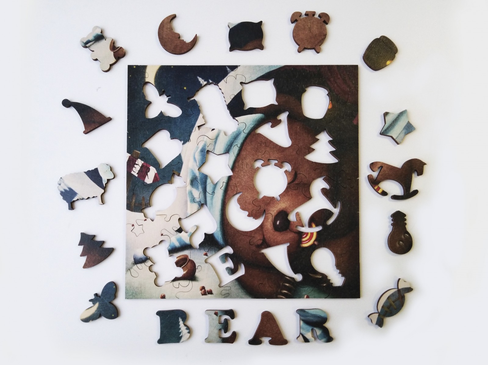 Яркий пазл из прочных деревянных элементов станет отличной зарядкой для ума. Соберите красочную иллюстрацию с милым спящим медвежонком!