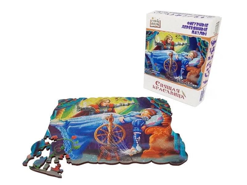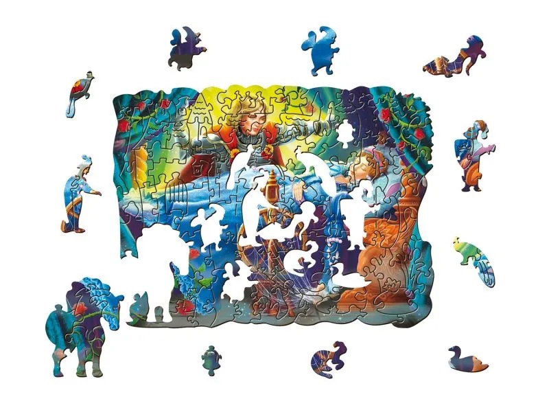Данный пазл изготовлен из дерева и содержит девяносто пять деталей с качественным и ярким принтом. Соберите вместе элементы разной формы и размера и получите красочную иллюстрацию из известной сказки!