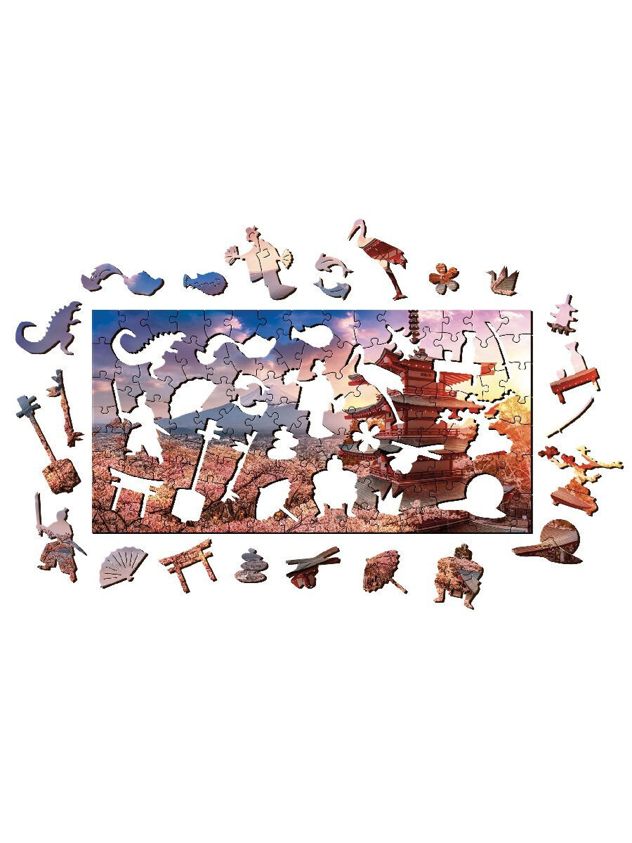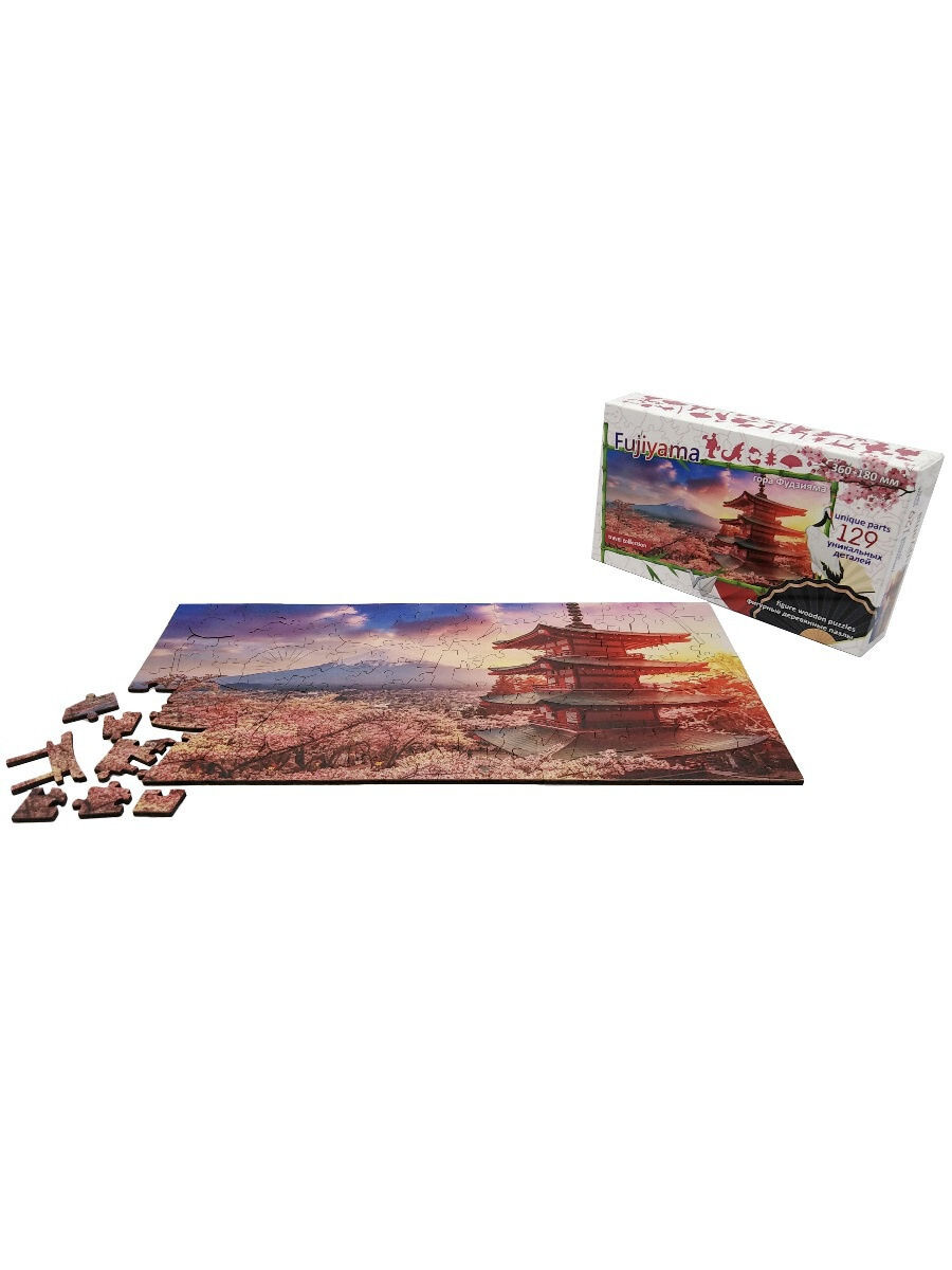 Данный пазл содержит прочные деревянные элементы разной формы и размера. Сможете ли вы собрать их воедино и получить красочную иллюстрацию горы Фудзияма?