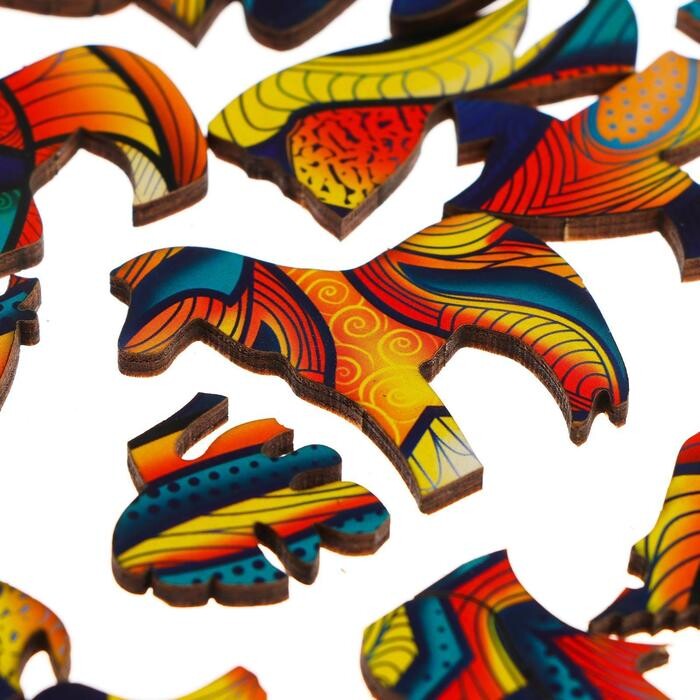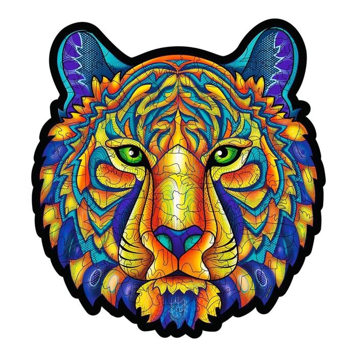 Данный пазл может стать серьезным испытанием, ведь в нем сто шестьдесят восемь деревянных деталей. Элементы имеют разную форму и размер, а также отличаются высоким качеством исполнения. В собранном виде пазл имеет красочное изображение льва.