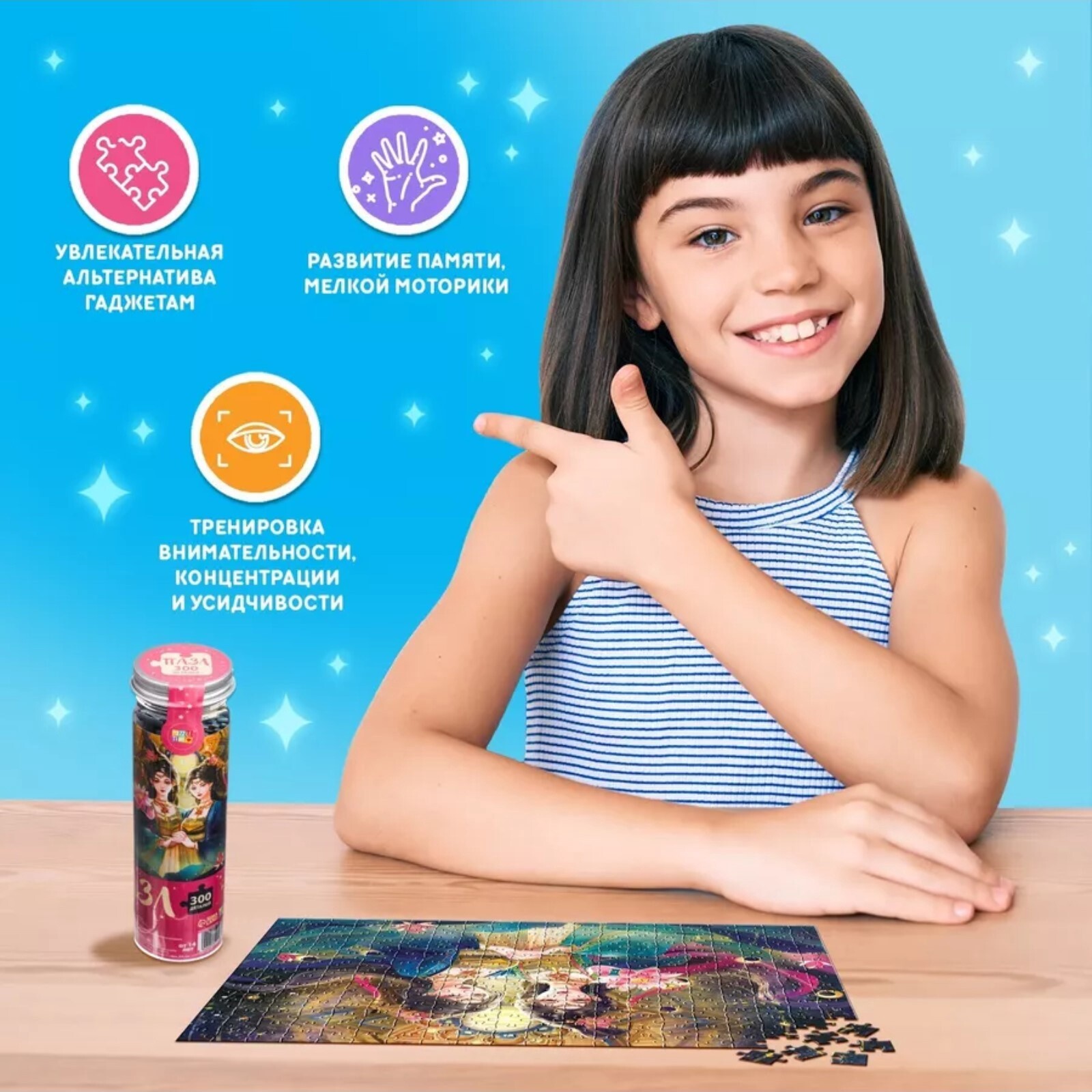 Игра с пазлами не только улучшает мелкую моторику рук у ребенка, но и помогает развить усидчивость, внимание и зрительную память, что очень упростит дальнейшее обучение в школе и, конечно, поможет в дальнейшей жизни. А собирание многотысячных пазлов может стать увлекательным общесемейным занятием.