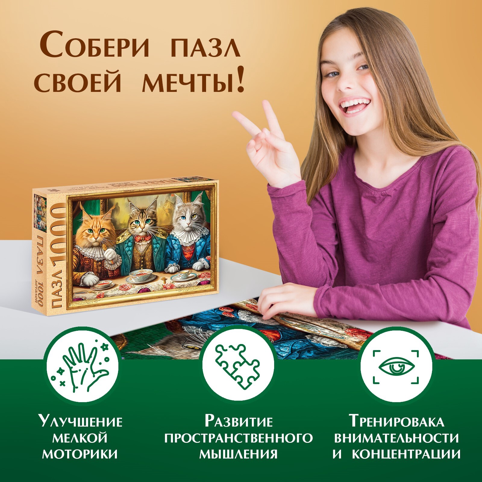 Игра с пазлами не только улучшает мелкую моторику рук у ребенка, но и помогает развить усидчивость, внимание и зрительную память, что очень упростит дальнейшее обучение в школе и, конечно, поможет в дальнейшей жизни. А собирание многотысячных пазлов может стать увлекательным общесемейным занятием.